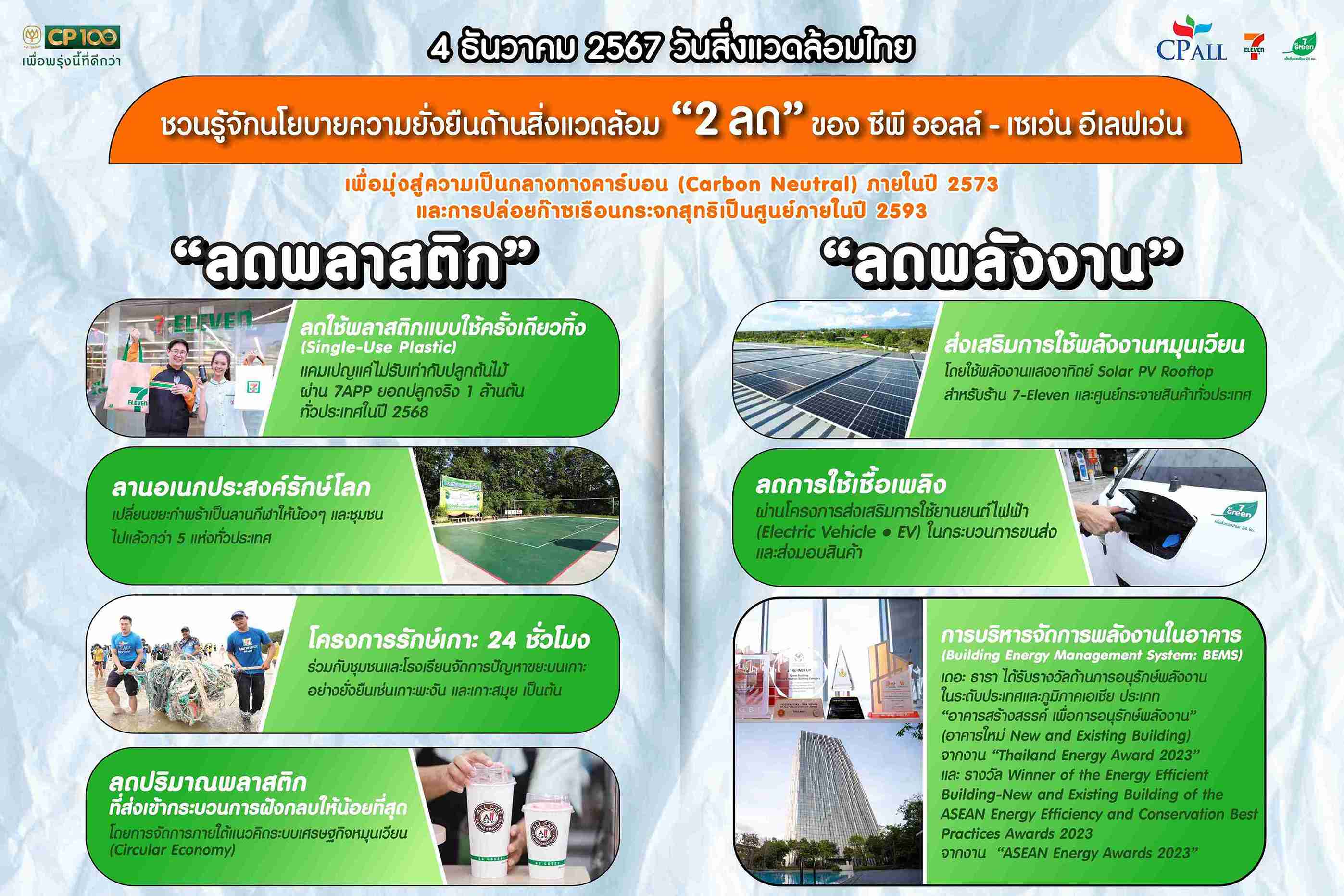วันสิ่งแวดล้อมไทย 4 ธันวาคม เซเว่นฯ เดินหน้านโยบาย “2 ลด ลดพลาสติก ลดพลังงาน” เพื่อสิ่งแวดล้อม 24 ชม. เชิญชวนคนไทย ลดใช้พลาสติกแบบใช้ครั้งเดียวทิ้ง