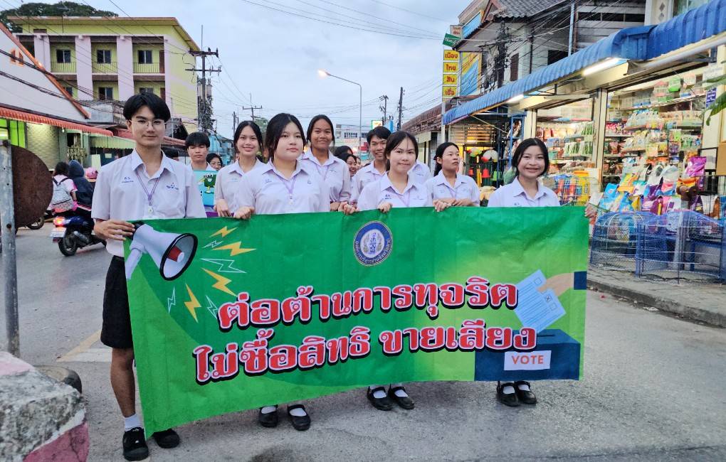 โรงเรียนสรรพวิทยาคม ส่งเสริมประชาธิปไตย ร่วมกิจกรรมเดินขบวนรณรงค์เลือกตั้งนายกองค์การบริหารส่วนจังหวัดตาก กับทางหน่วยงานอำเภอแม่สอด