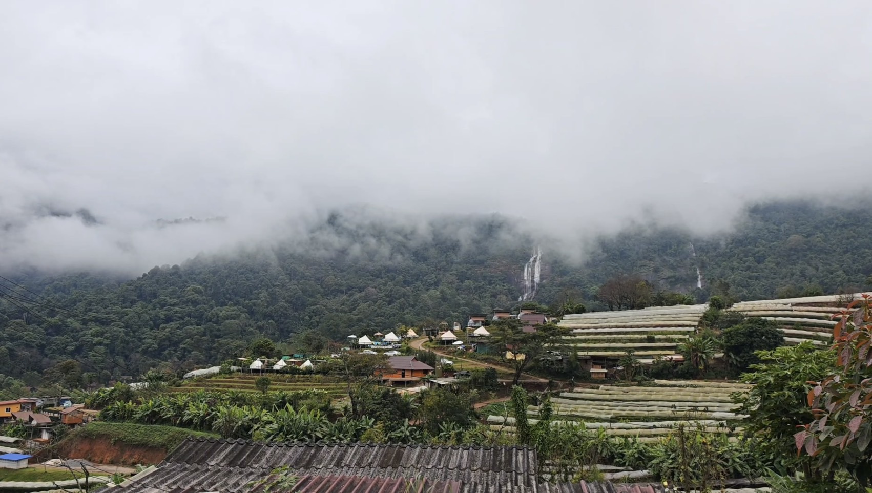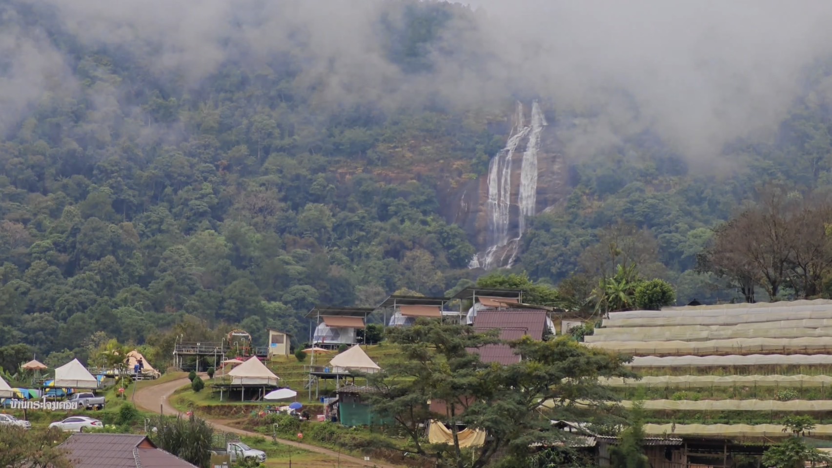 บรรยากาศที่บ้านขุนกลาง หมู่บ้านในหุบเขากลางอุทยานแห่งชาติดอยอินทนนท์ อำเภอจอมทอง จังหวัดเชียงใหม่ ที่ล้อมรอบด้วยภูเขาสูงและทุ่งนา เต็มไปด้วยความงดงามของธรรมชาติที่มีทั้งสายหมอก ดอกไม้ รวมทั้งน้ำตกสิริภูมิบนหน้าผาสูงชันเป็นฉากหลังราวกับภาพวาด ซึ่งทิวทัศน์ที่สวยงามทำให้บ้านขุนกลางเป็นอีกหนึ่งจุดหมายปลายทางที่ดึงดูดนักท่องเที่ยวให้เข้ามาเยือนอย่างไม่ขาดสายโดยเฉพาะในช่วงฤดูหนาว
