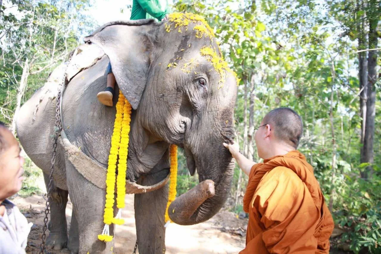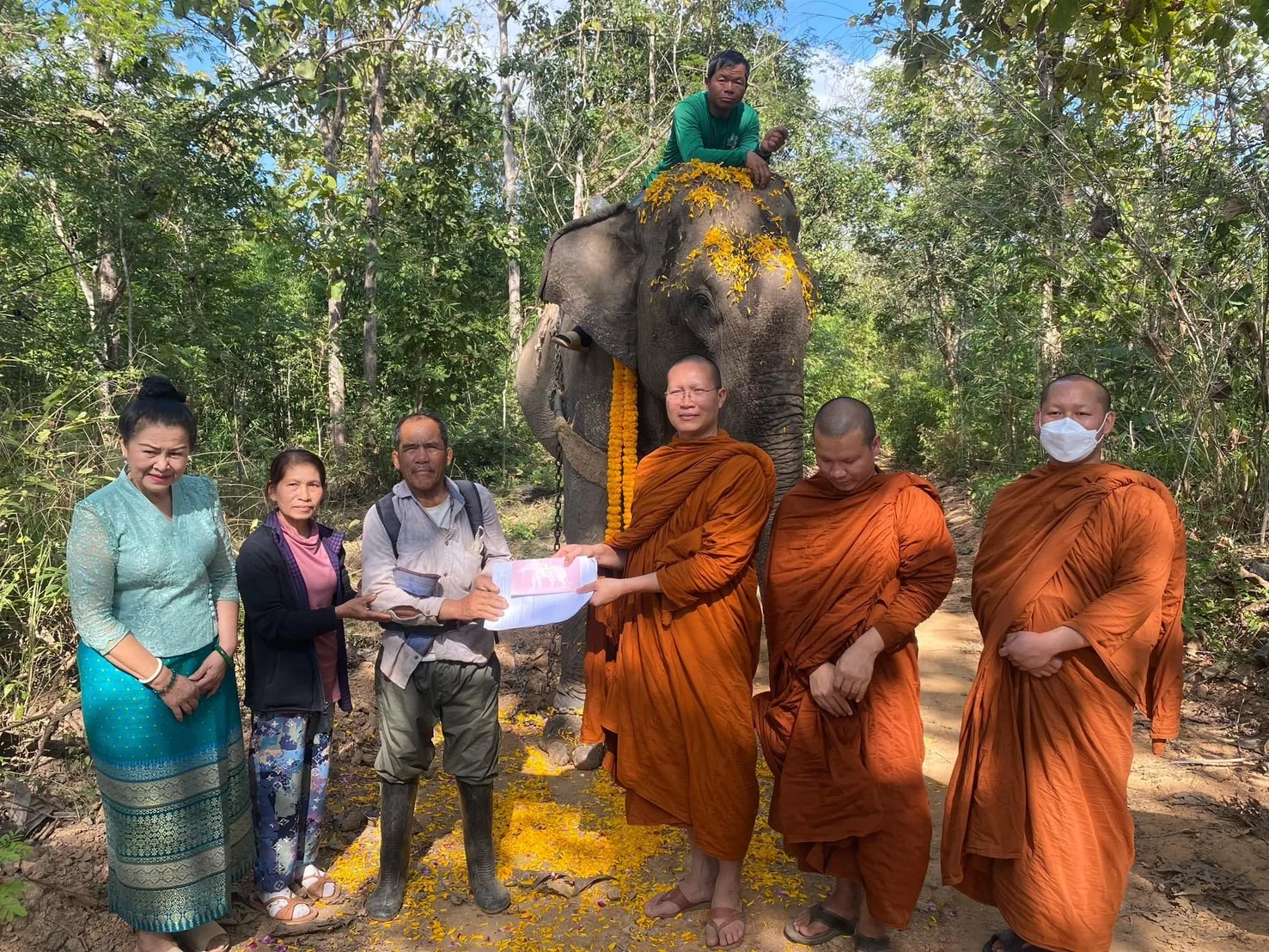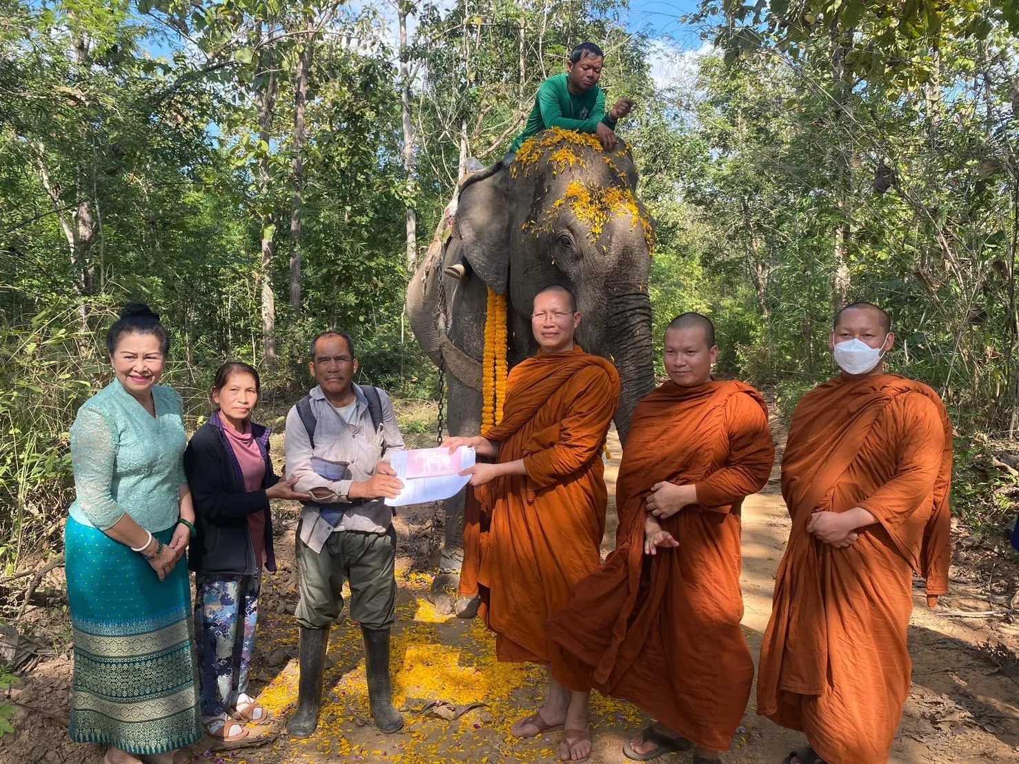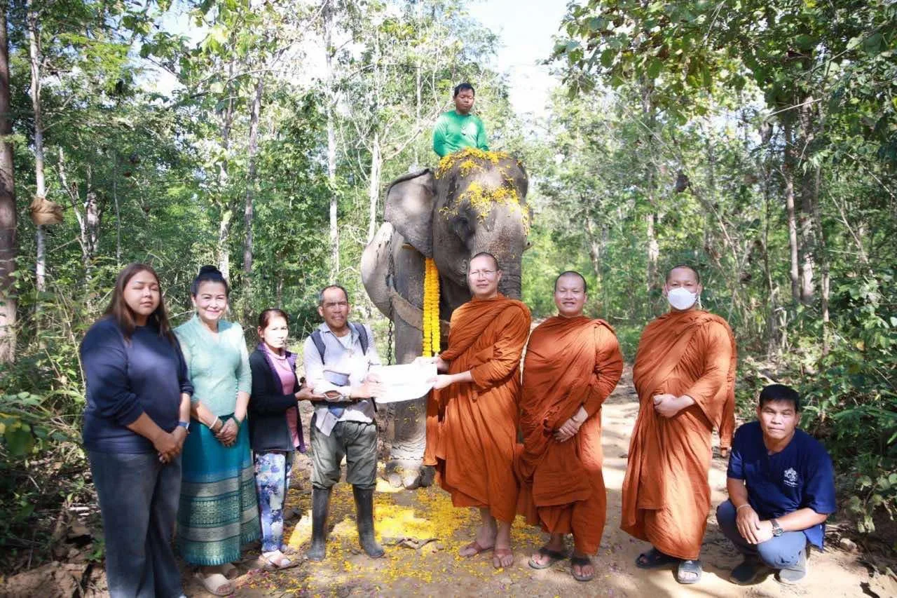 ต่อลมหายใจช้างไทย ได้หยุดลากไม้แล้วนะ “พลายแสนทรัพย์” ช้างตระกูลแสน เชือกที่ 21 ได้ร่มใบบุญพระครูอ๊อด