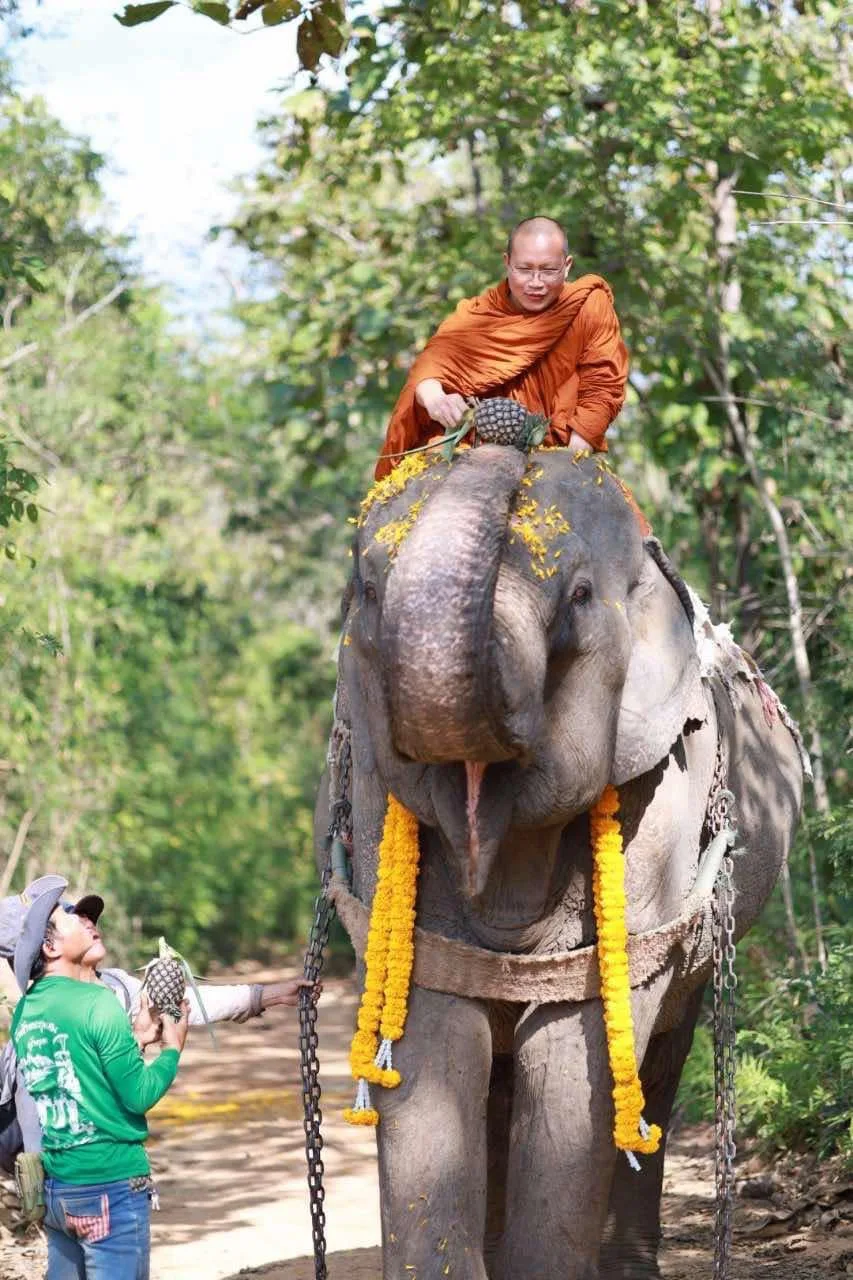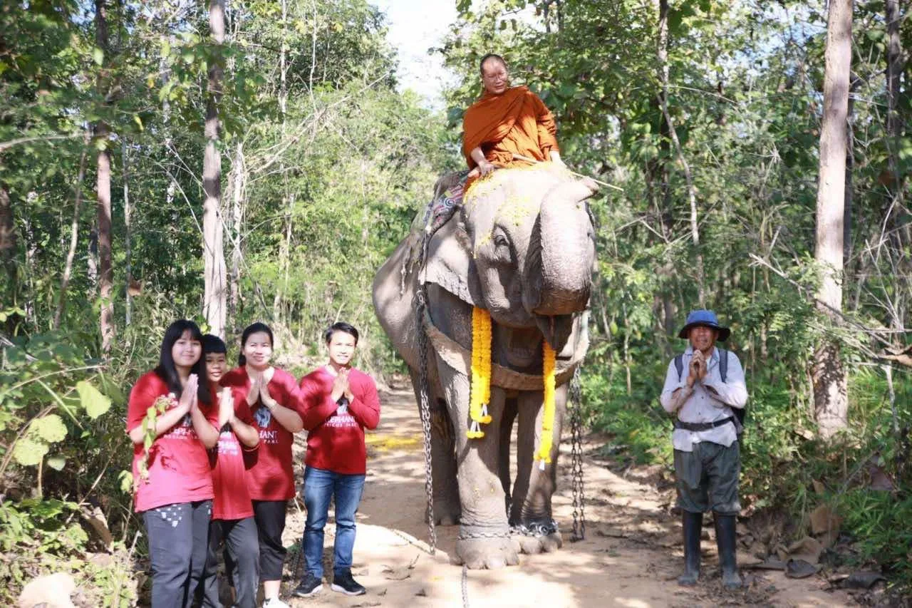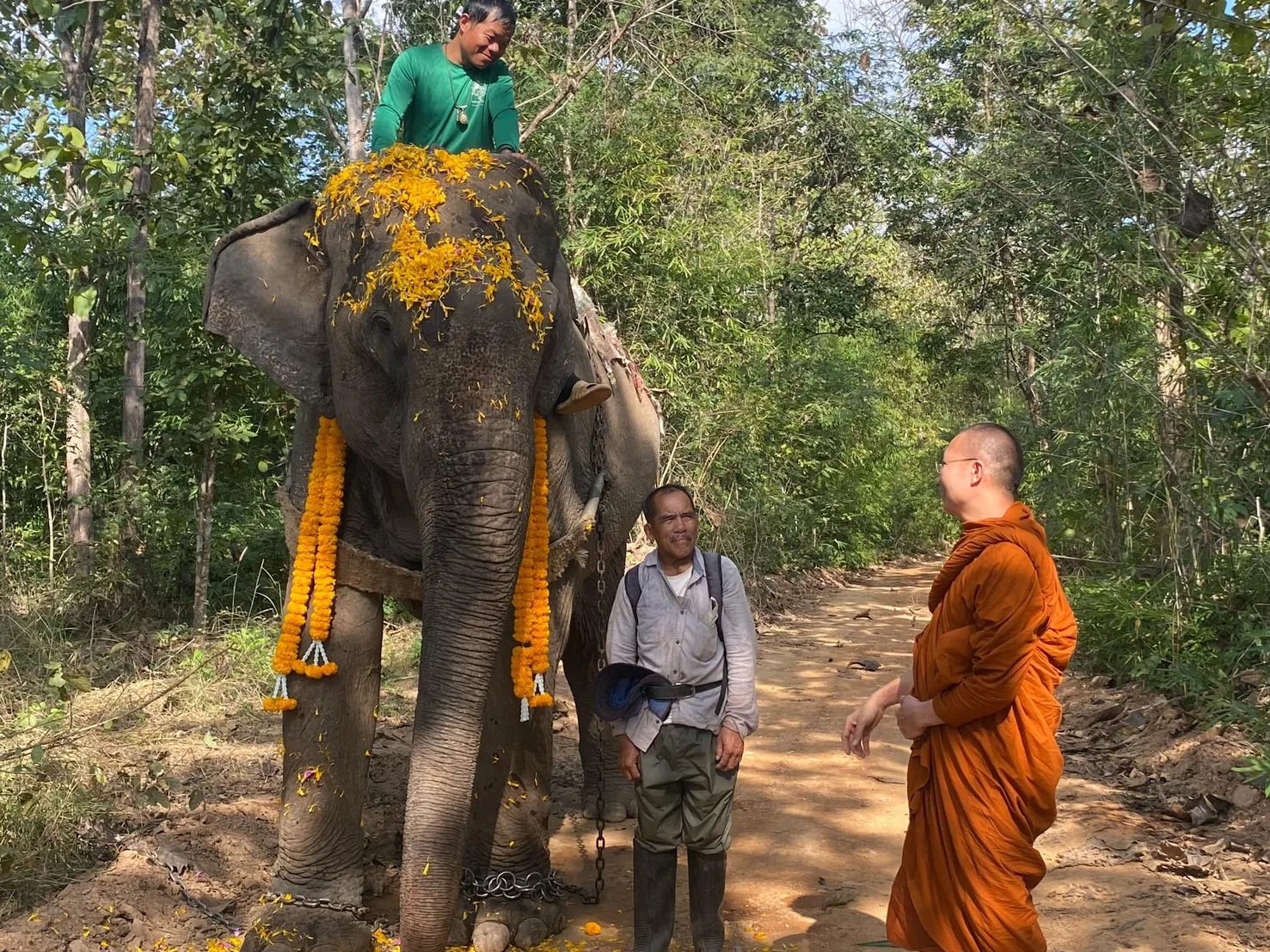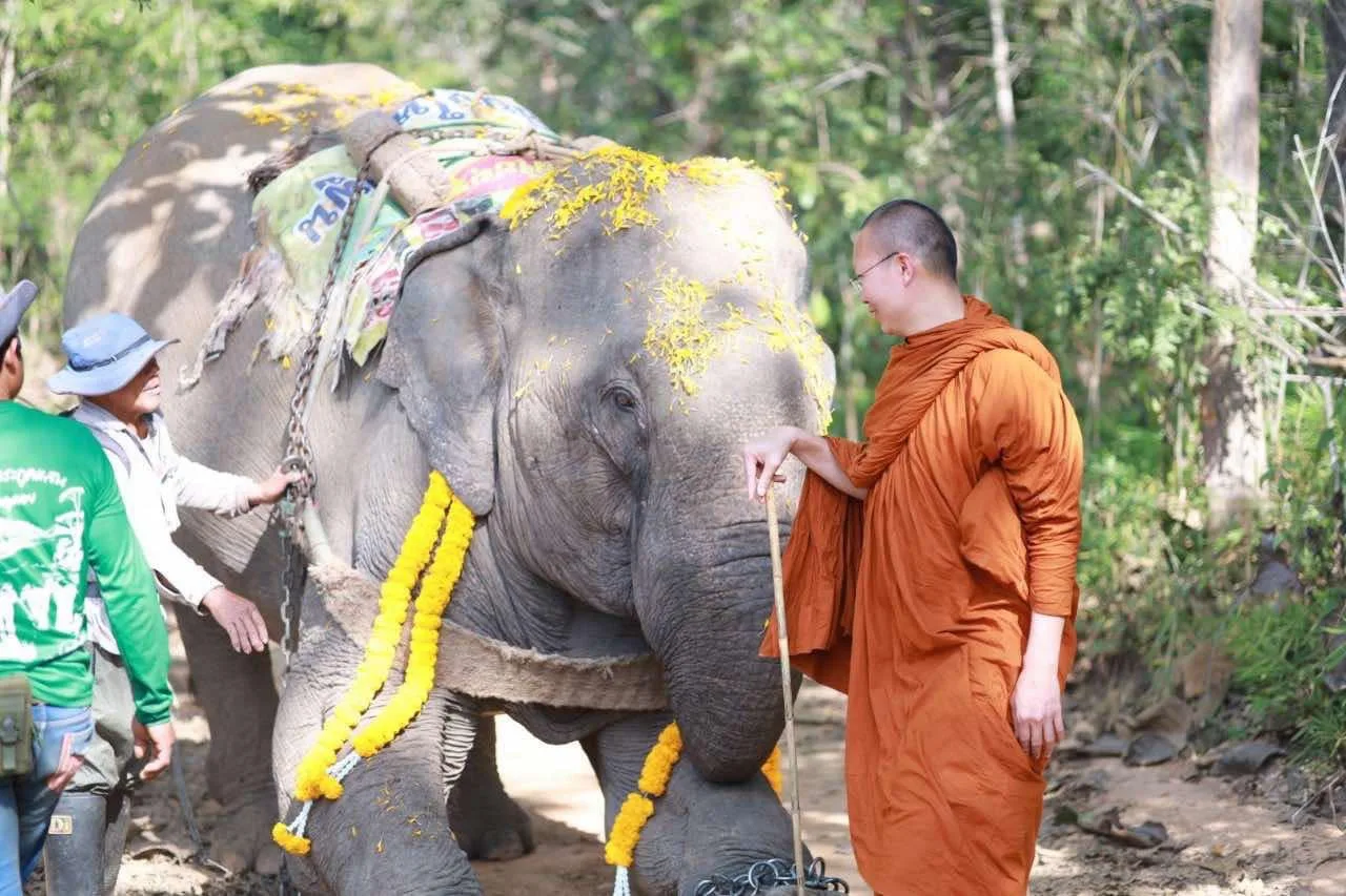 ต่อลมหายใจช้างไทย ได้หยุดลากไม้แล้วนะ “พลายแสนทรัพย์” ช้างตระกูลแสน เชือกที่ 21 ได้ร่มใบบุญพระครูอ๊อด