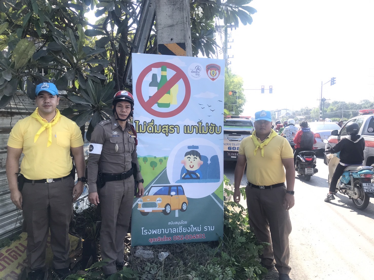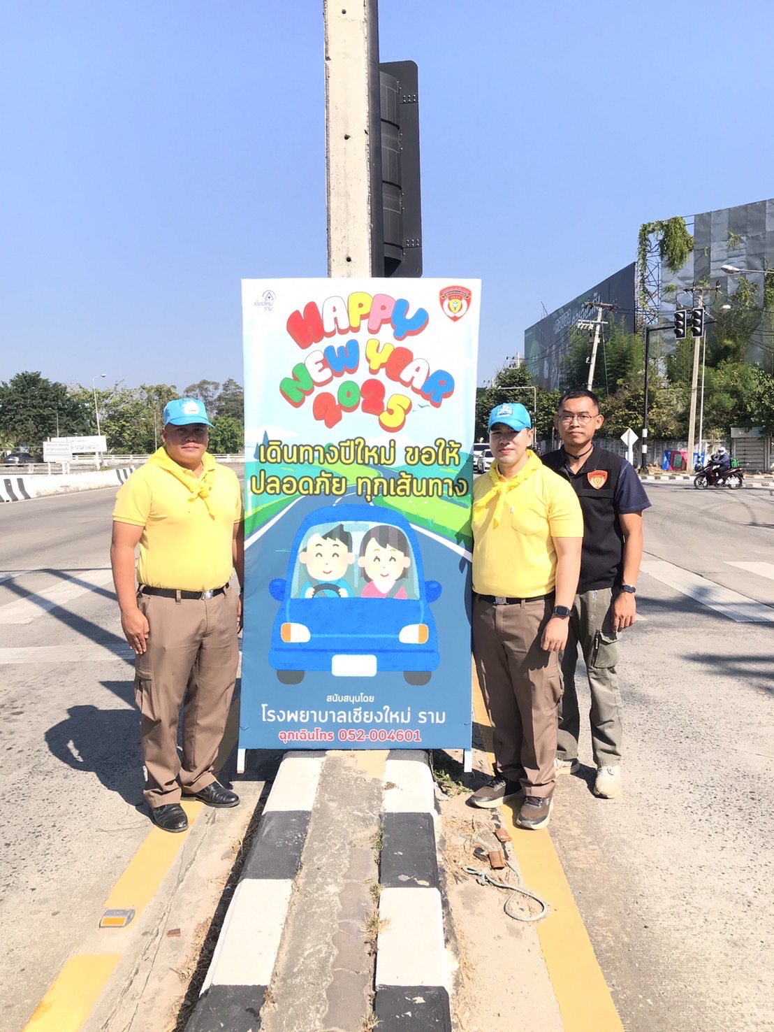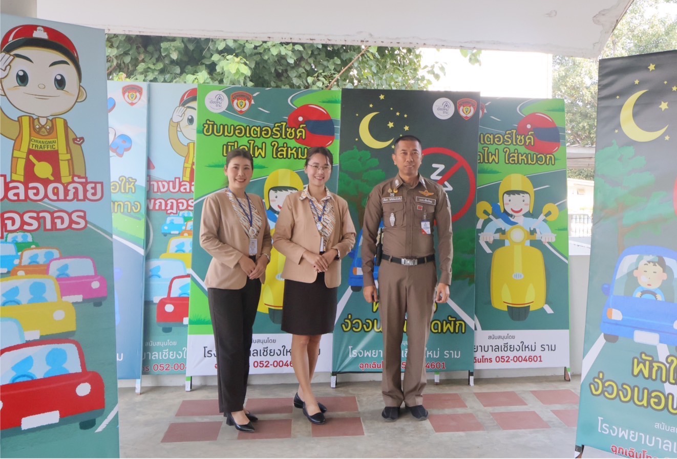 โรงพยาบาลเชียงใหม่ ราม ร่วมกับ ตำรวจจราจรเชียงใหม่ นำโดย พ.ต.ท. ศักดา โชติพัฒนโภคิน สารวัตรกลุ่มงานจราจร ตำรวจภูธรเชียงใหม่ ได้มอบป้ายรณรงค์เพื่อส่งเสริมความปลอดภัยบนท้องถนนในช่วงเทศกาลปีใหม่ ข้อความบนป้ายเน้นย้ำถึงความสำคัญของการขับขี่ที่ปลอดภัย อาทิ