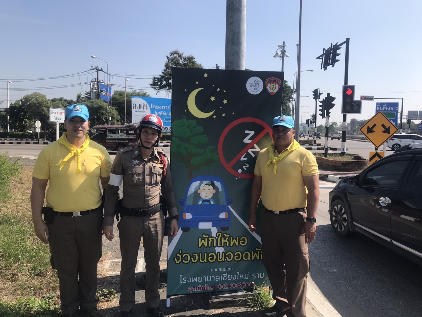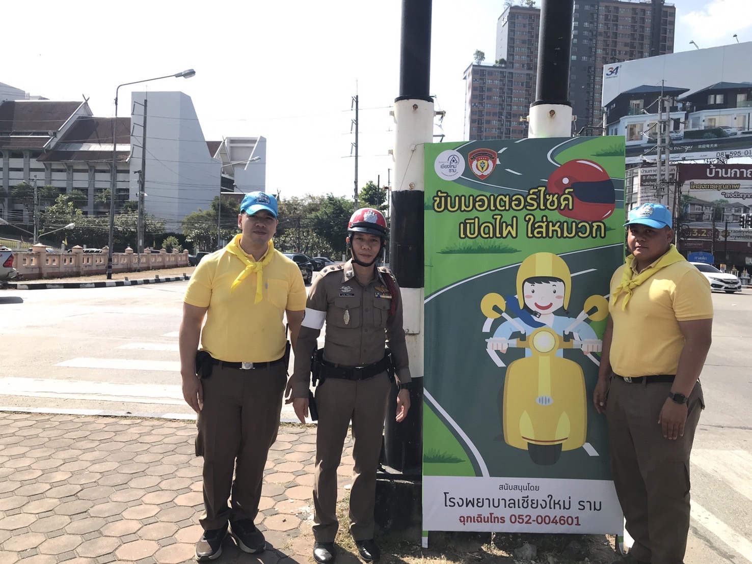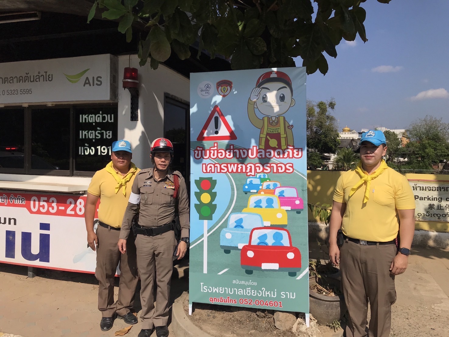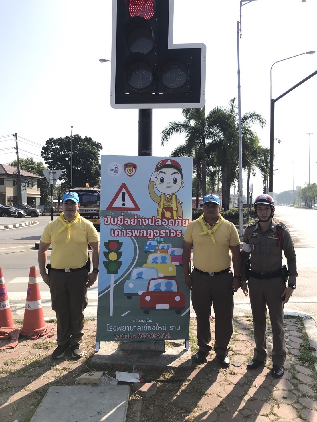 โรงพยาบาลเชียงใหม่ ราม ร่วมกับ ตำรวจจราจรเชียงใหม่ นำโดย พ.ต.ท. ศักดา โชติพัฒนโภคิน สารวัตรกลุ่มงานจราจร ตำรวจภูธรเชียงใหม่ ได้มอบป้ายรณรงค์เพื่อส่งเสริมความปลอดภัยบนท้องถนนในช่วงเทศกาลปีใหม่ ข้อความบนป้ายเน้นย้ำถึงความสำคัญของการขับขี่ที่ปลอดภัย อาทิ