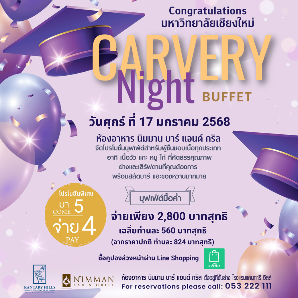 นอกจากนี้ ยังมีโปรโมชั่น บุฟเฟ่ต์มื้อค่ำ Carvery Night Buffet วันศุกร์ที่ 17 มกราคม 2568