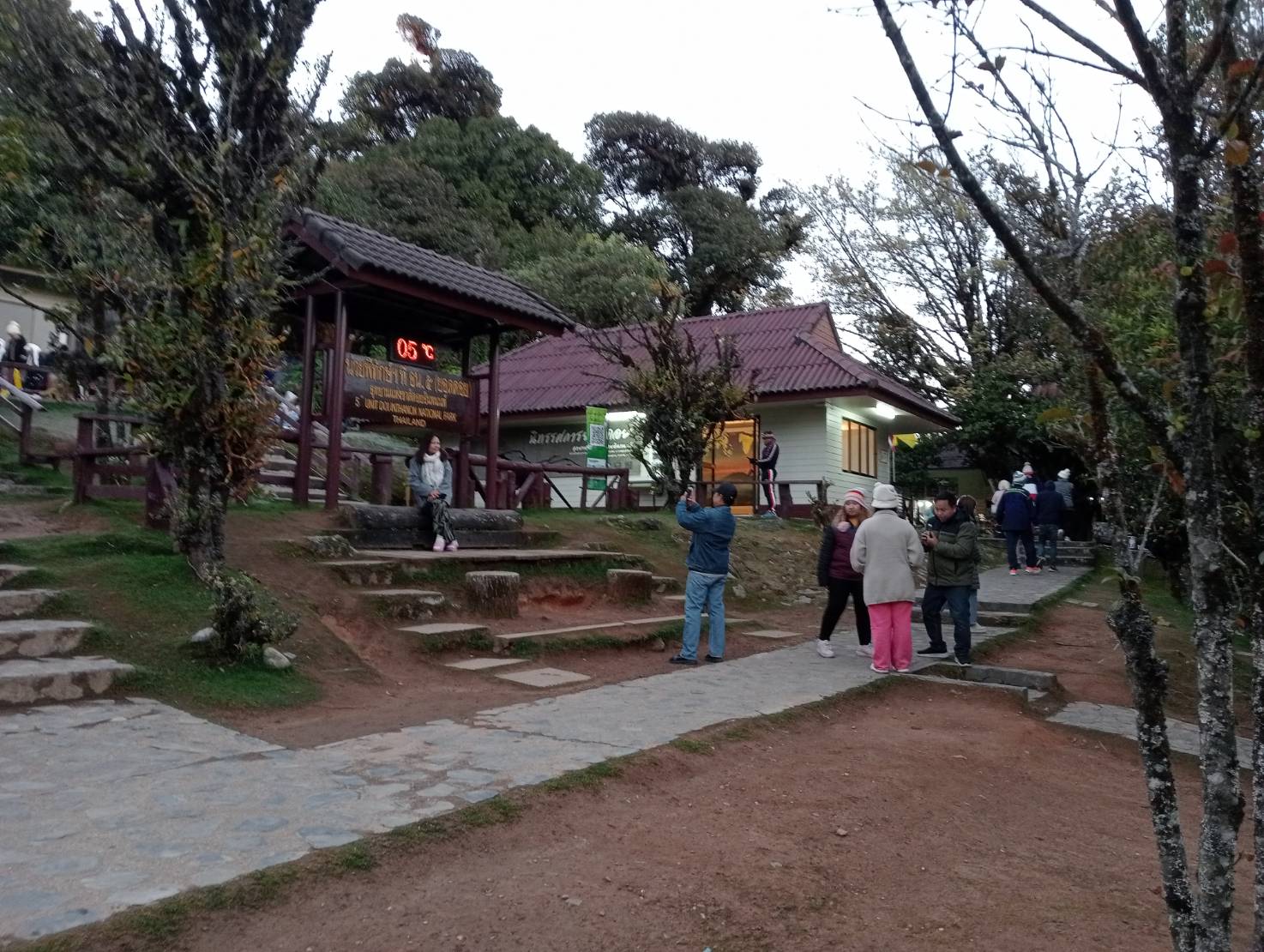 อุณหภูมิต่ำสุด 3 องศาเซลเซียสที่กิ่วแม่ปาน (7.00 น.) อุณหภูมิต่ำสุดของหนาวปีนี้ -พบบริเวณ กิ่วแม่ปาน ลานจอดตรงข้ามพระมหาธาตุเจดีย์ (t=3°C)-พบบริเวณ หน่วยพิทักษ์อุทยานแห่งชาติดอยอินทนนท์ ที่ อน.5 (ยอดดอย) (t=7°C ,tยอดหญ้า=0.9 °C)