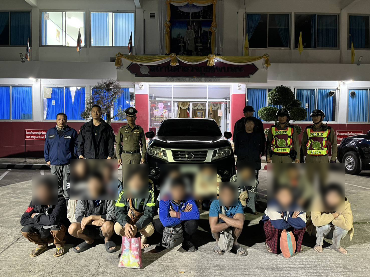 และบุคคลต่างด้าวสัญชาติเมียนมา จำนวน 14 ราย เป็นชาย 12 ราย เป็นหญิง 2 ราย ในข้อหา “เป็นบุคคลต่างด้าวลักลอบเข้ามาในราชอาณาจักรไทยโดยไม่ได้รับอนุญาต” พร้อมของกลาง รถกระบะ ยี่ห้อ Nissan รุ่น นาวาล่า สีน้ำเงิน หมายเลขทะเบียน กทม.