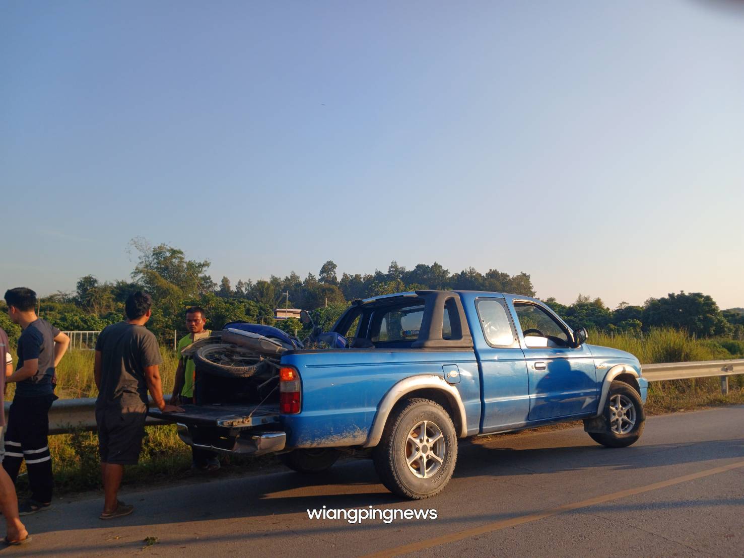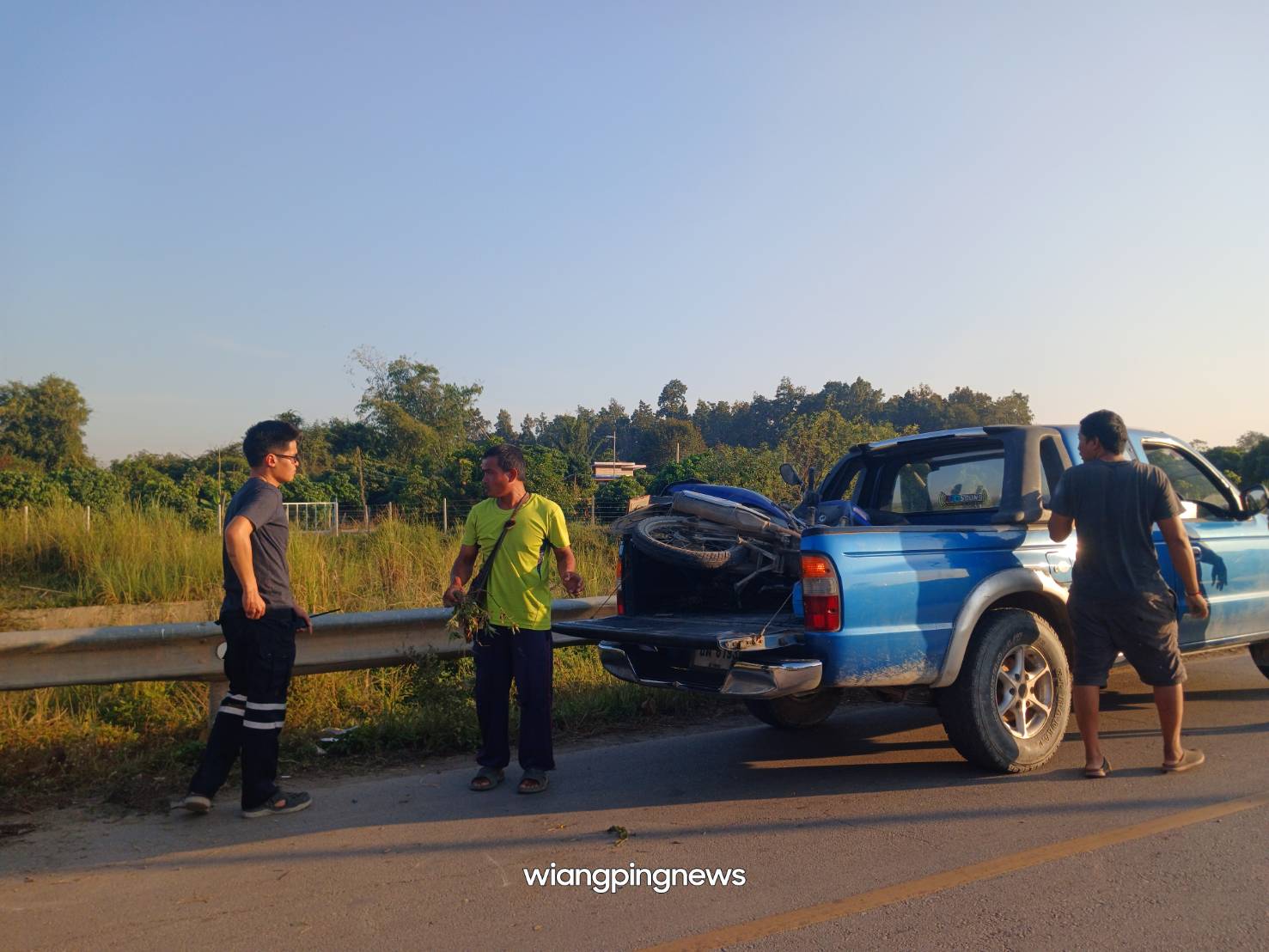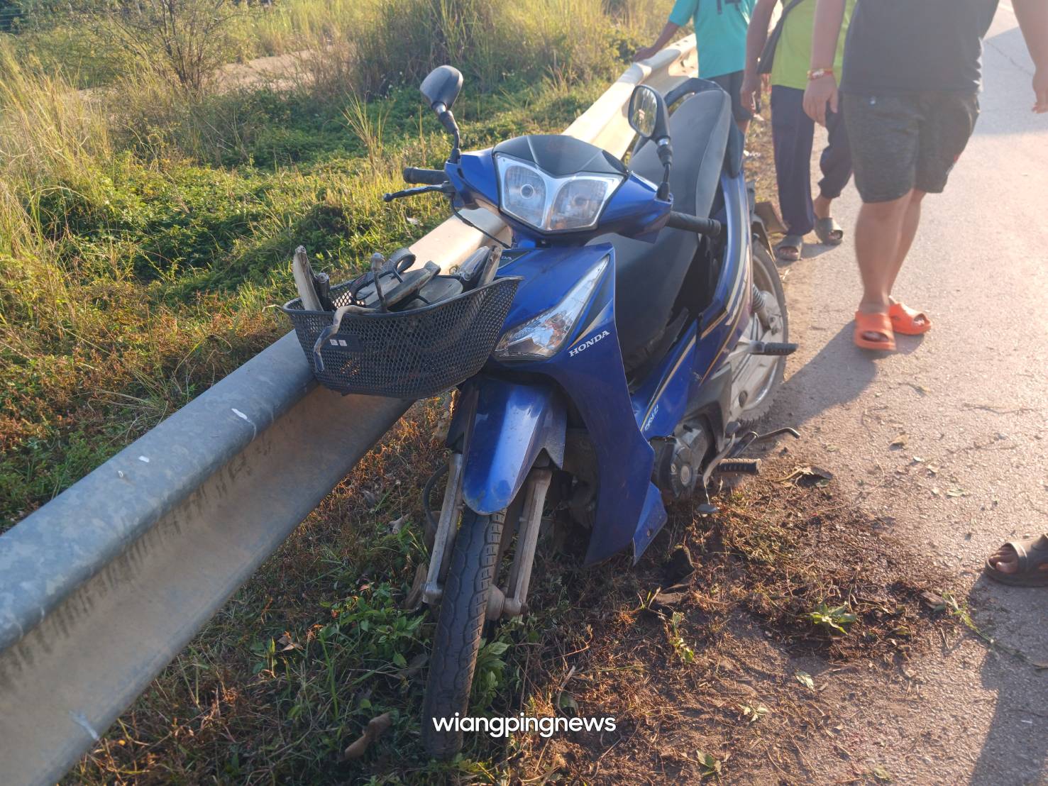 ตรวจสอบพบพบผู้บาดเจ็บเป็นชาย 1 รายอายุ 16 ปี มีอาการบาดเจ็บบริเวณข้อมือซ้ายผิดรูปมีบาดแผลบริเวณศีรษะ ทำการปฐมพยาบาลก่อนนำตัวส่งโรงพยาบาสันทราย ส่วนรถจักรยานยนต์ทางบิดาได้นำเก็บรักษาไว้ไม่มีทรัพย์สินทางราชการเสียหาย หากท่านใดใช้ถนนเส้นนี้ให้เพิ่มความระมัดระวังในการขับขี่เนื่องจากเป็นทางโค้งและเกิดอุบัติเหตุขึ้นบ่อยครั้ง