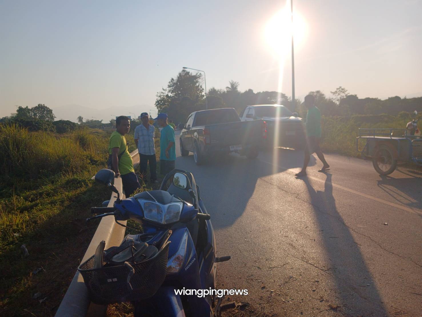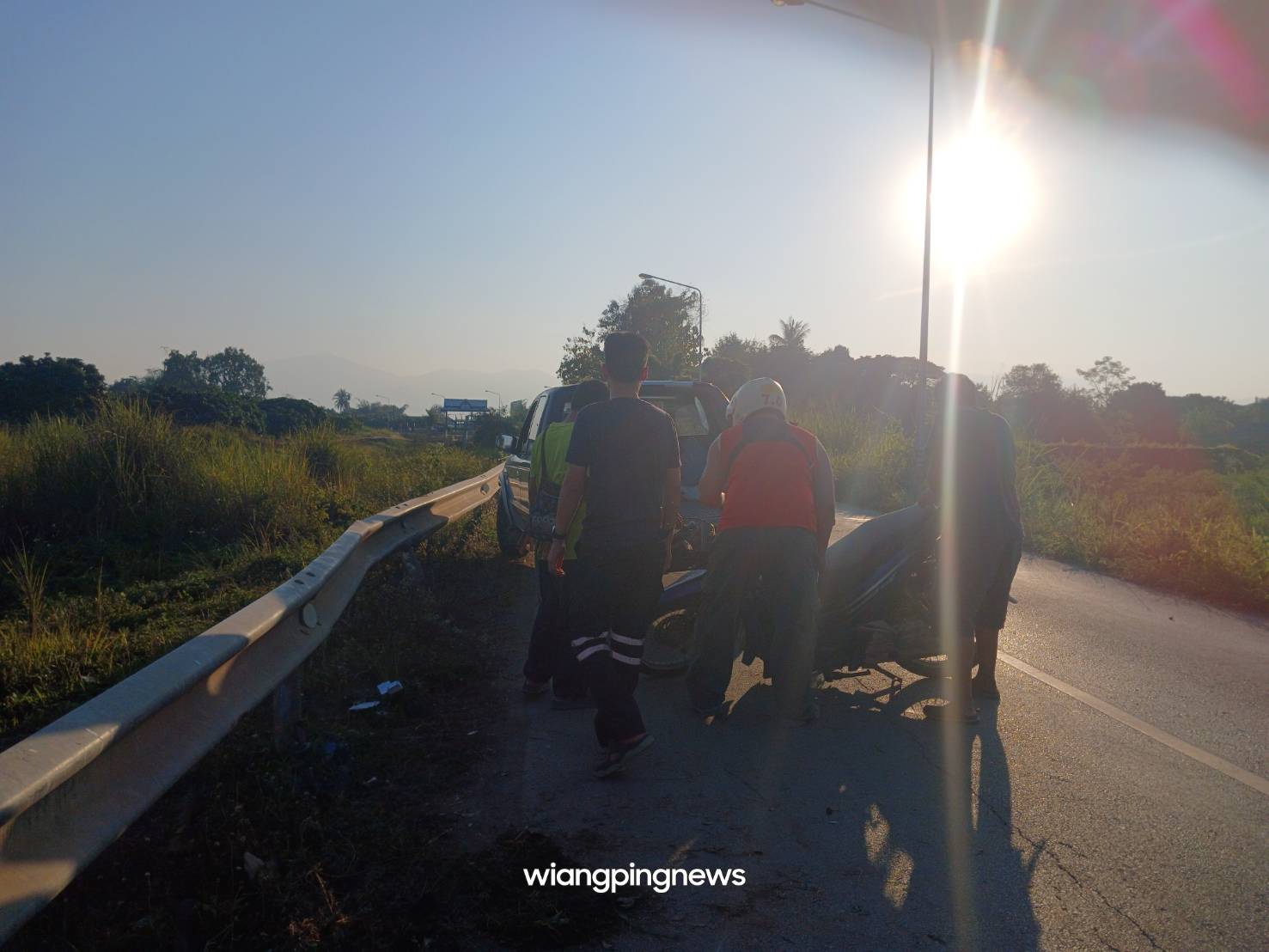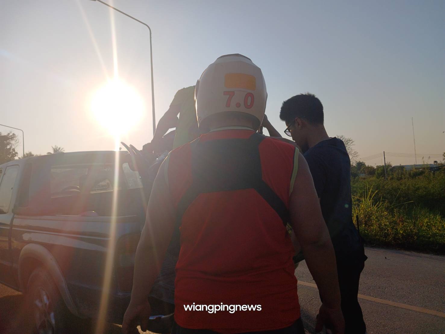 ตรวจสอบพบพบผู้บาดเจ็บเป็นชาย 1 รายอายุ 16 ปี มีอาการบาดเจ็บบริเวณข้อมือซ้ายผิดรูปมีบาดแผลบริเวณศีรษะ ทำการปฐมพยาบาลก่อนนำตัวส่งโรงพยาบาสันทราย ส่วนรถจักรยานยนต์ทางบิดาได้นำเก็บรักษาไว้ไม่มีทรัพย์สินทางราชการเสียหาย หากท่านใดใช้ถนนเส้นนี้ให้เพิ่มความระมัดระวังในการขับขี่เนื่องจากเป็นทางโค้งและเกิดอุบัติเหตุขึ้นบ่อยครั้ง