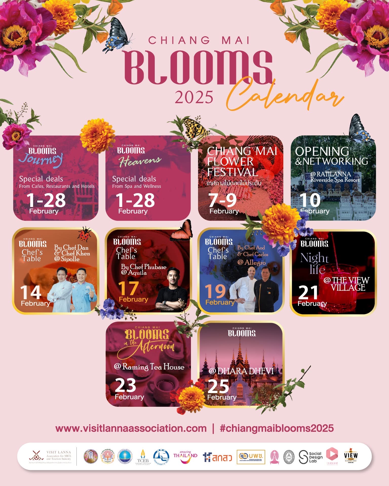 This year, we are implementing four key strategies to connect activities throughout February. These include: Blooms Communication: Enhancing visibility for network entrepreneurs by showcasing activities, products, and services that reflect the region’s unique charm and Lanna soft power. This approach focuses on creating meaningful connections with international audiences who appreciate culture and authenticity. Blooms Network: Creating engaging activities to nurture collaboration among entrepreneurs in the food, spa, handicraft, hotel, and tourism sectors within the Northern Economic Corridor. The focus is on enhancing products, services, and experiences that reflect the festival’s values, celebrating the beauty of flowers and sustainable living in harmony with nature—while naturally attracting appreciative travelers. Blooms Product & Service: This strategy focuses on promoting the value and stories of flowers and sustainable living to consumers. Blooms Event Calendar and Navigator: Helping target tourist groups discover festival sub-events while fostering shared benefits among network entrepreneurs.