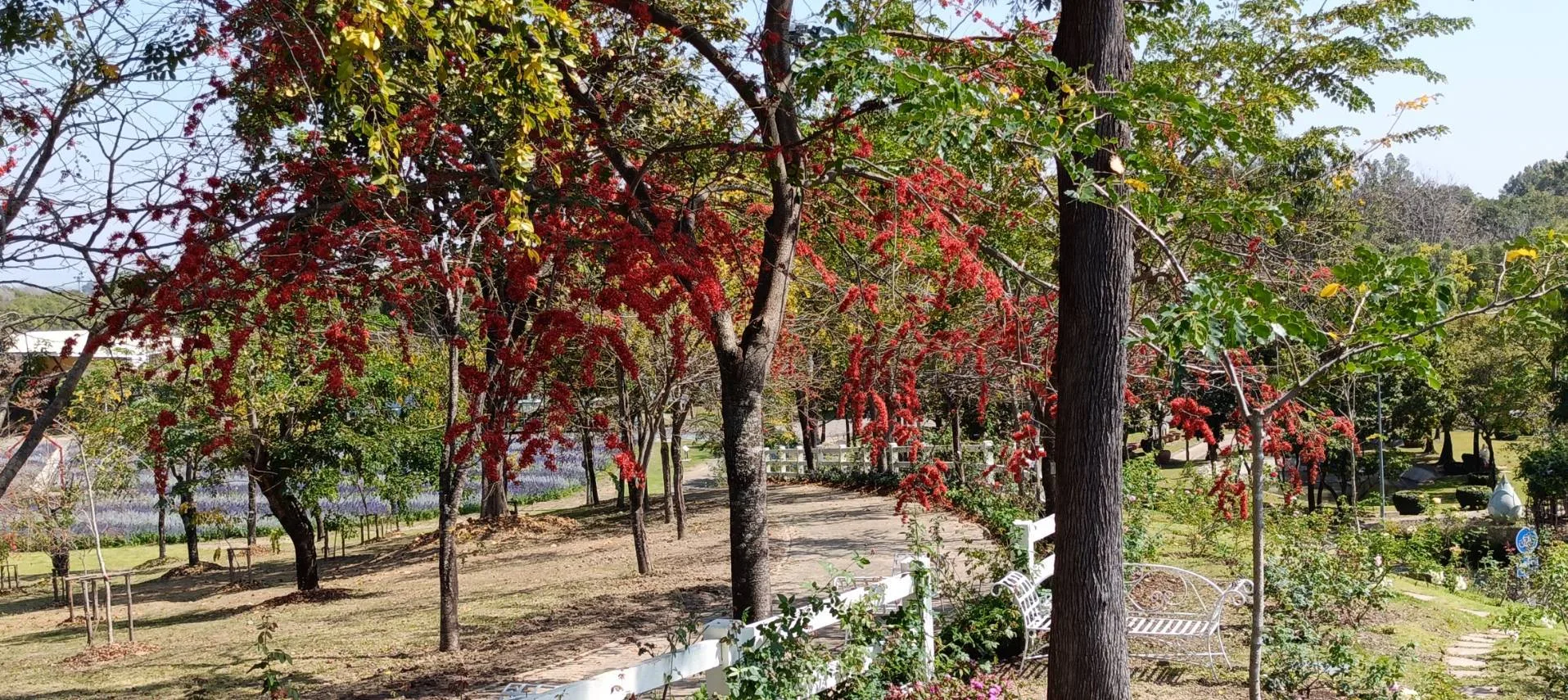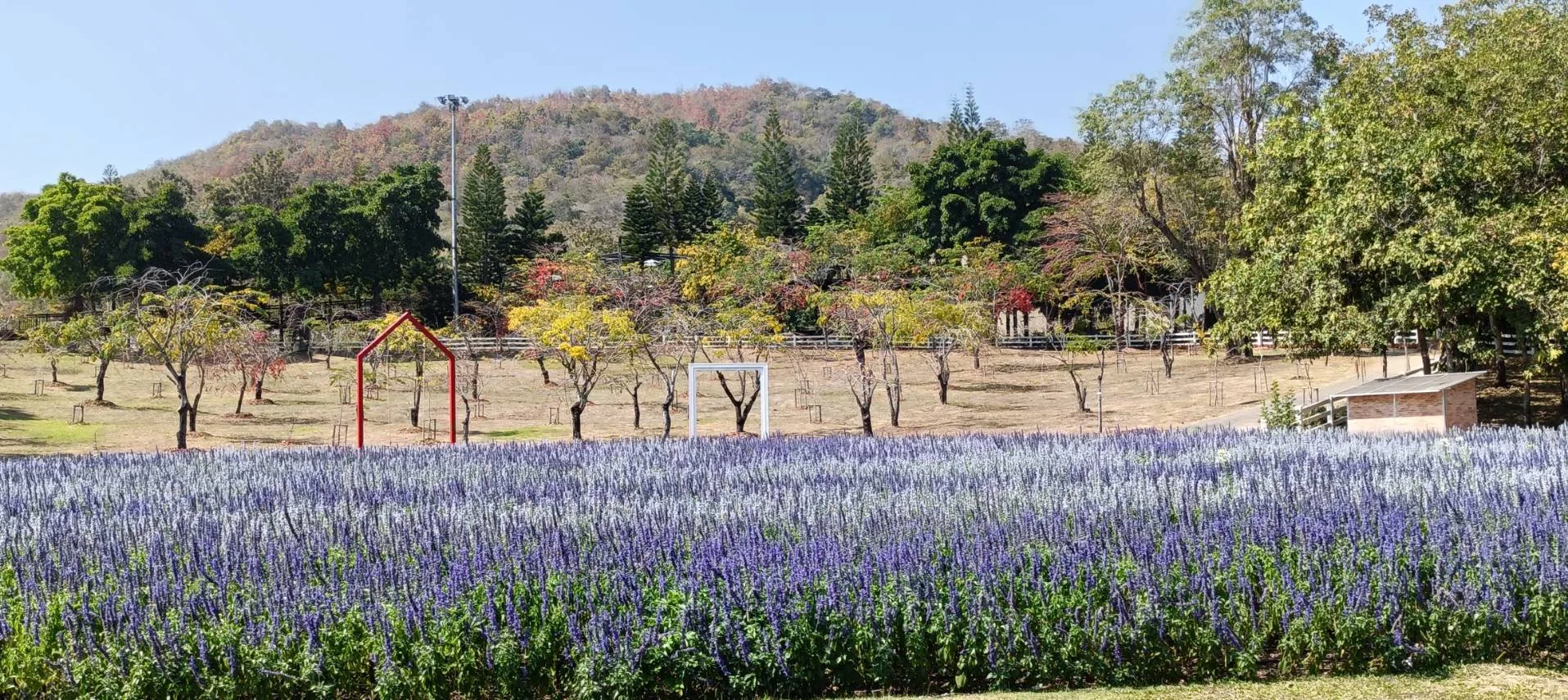 สวยสะพรั่งไปกับ “ประดู่แดง” ไม้กลุ่มสีที่กำลังเริ่มทยอยผลิบาน โชว์ความสวยงามของกลีบดอกสีแดงสดใสบริเวณลานประดู่แดงติดกับสวนพรมบุปผา หรือจะถ่ายมุมบน Sky walk ก็สวยไม่แพ้กัน จะมองวิวต้นประดู่แดงจาก Sky Walk หรือเดินเล่นชมบรรยากาศตามลานประดู่แดงก็ได้ แถมมีมุมถ่ายรูปกับทุ่งดอกซัลเวียเห็นวิวประดู่แดงด้านหลัง ถ่ายรูปมุมไกล มุมใกล้ก็ดูดีสุดๆ รับรองว่าได้รูปสวยปังไว้ลงโซเชียลแน่นอน