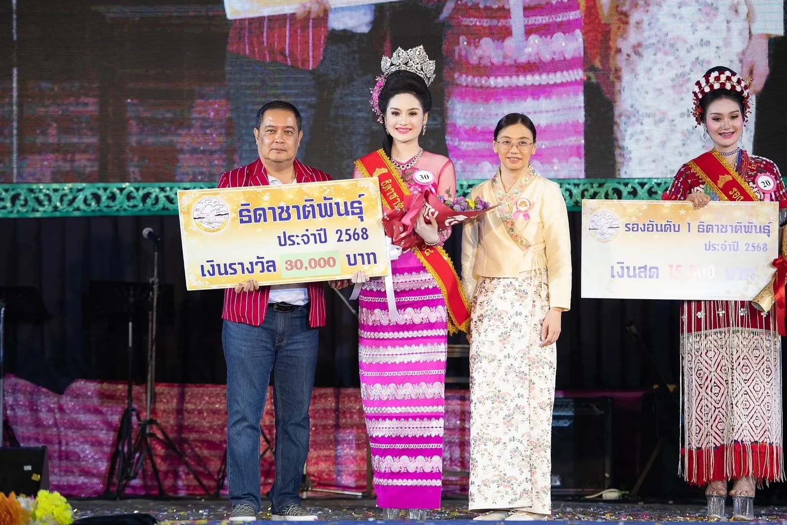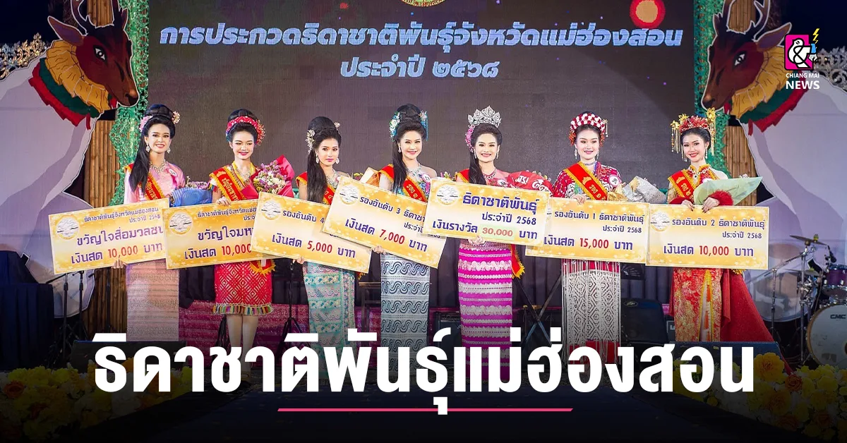 ผลการตัดสินผู้ที่ได้ครองตำแหน่งธิดาชาติพันธุ์จังหวัดแม่ฮ่องสอน ประจำปี 2568 ได้แก่ หมายเลข 30 นางสาวกาสะลอง วงศ์คีรี ชาติพันธุ์ไทใหญ่