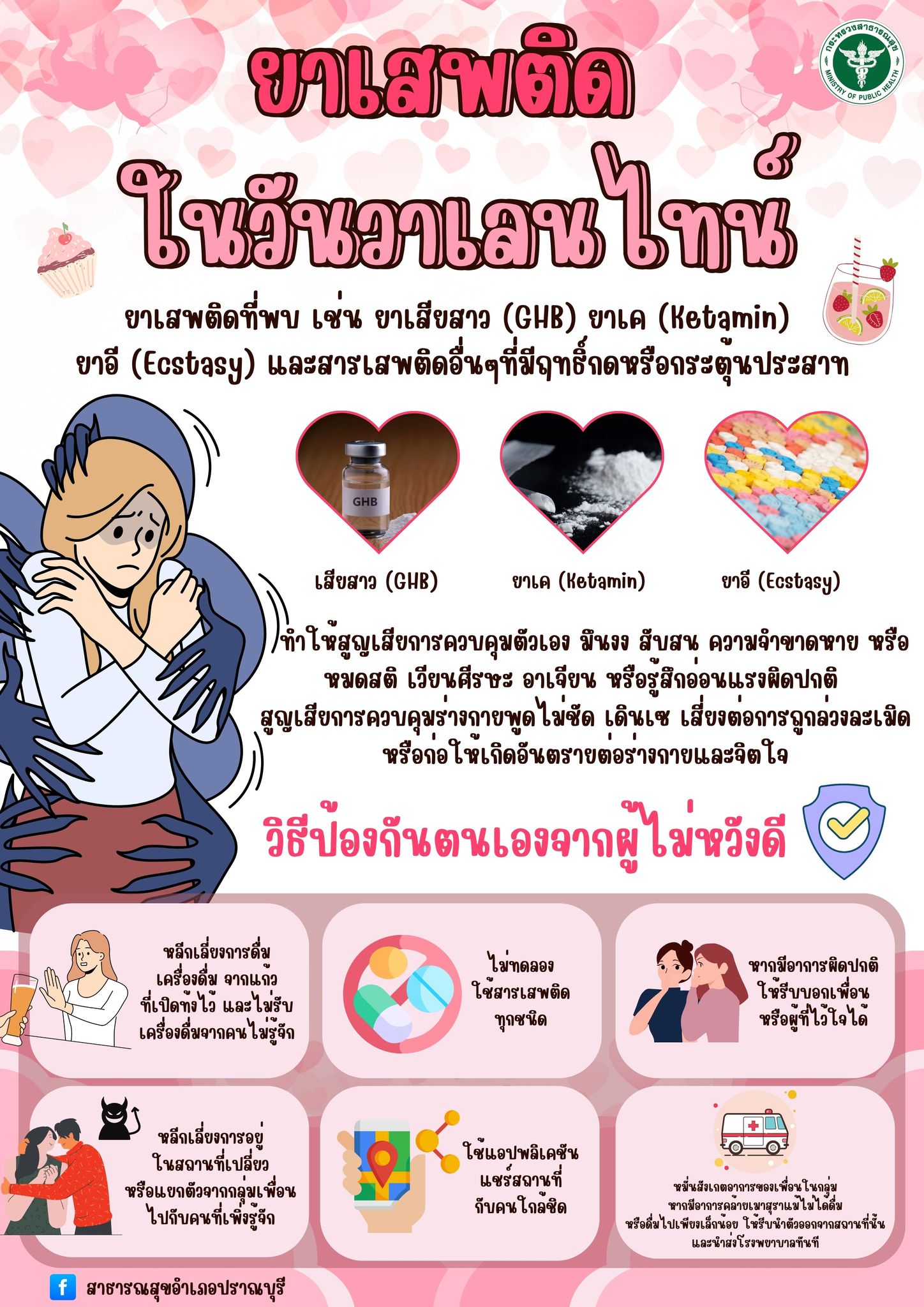 ยาเสพติดที่พบ เช่น ยาเสียสาว (GHB) ยาเค (Ketamin) ยาอี (Ecstasy) และสารเสพติดอื่นๆที่มีฤทธิ์กดหรือกระตุ้นประสาท 🧠