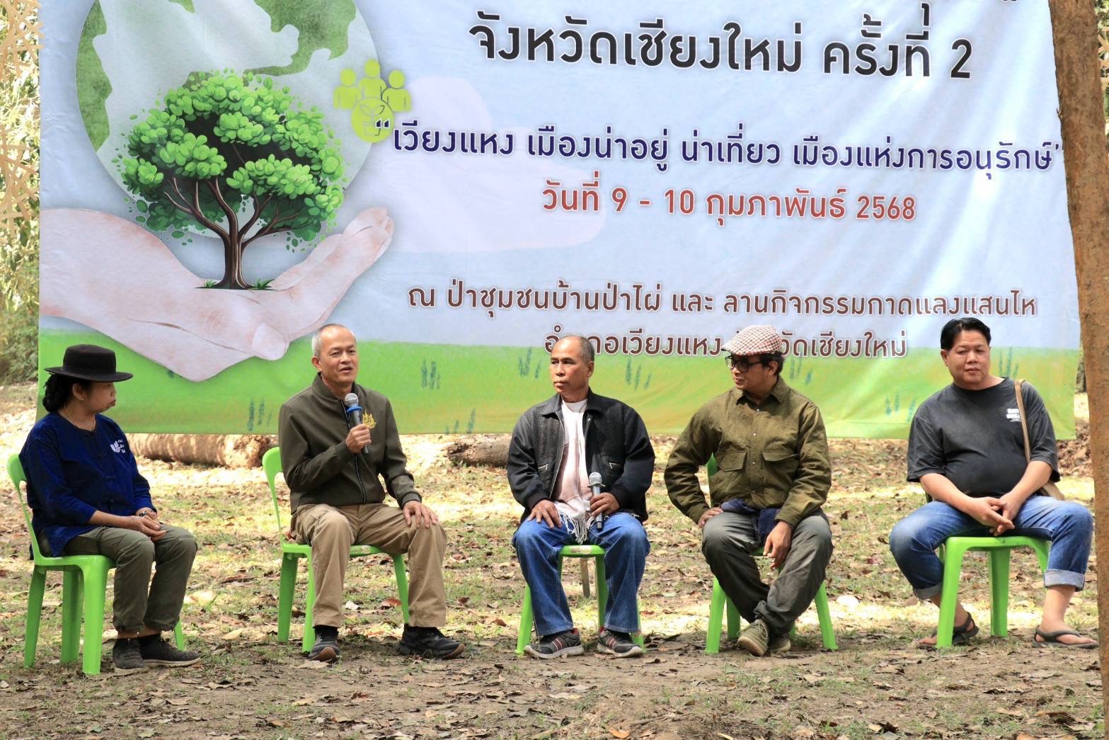 สำหรับเวทีสมัชชาป่าชุมชนจังหวัดเชียงใหม่ ครั้งที่ 2 เวียงแหง เมืองน่าอยู่ น่าเที่ยวเมืองแห่งการอนุรักษ์ เป็นอีกหนึ่งสัญลักษณ์ในความร่วมมือระหว่างหน่วยงานทั้งภาครัฐ ภาคเอกชน ภาคประชาสังคม และชุมชน มีการแลกเปลี่ยนรูปแบบการบริหารจัดการป่าชุมชนของเครือข่ายในแต่ละพื้นที่ สะท้อนจุดแข็ง จุดอ่อน โอกาสและอุปสรรค ในการขับเคลื่อนกลไกการทำงานของทุกภาคส่วน ตลอดจนลงพื้นที่เยี่ยมชมป่าชุมชน อ.เวียงแหง ในการสร้างเป็นแหล่งเรียนรู้ ต่อยอดการท่องเที่ยว การจัดการไฟป่าและเชื้อเพลิง ตลอดจนขยายผลเป็นหลักสูตรท้องถิ่นสู่โรงเรียนในพื้นที่ โดยมีโครงการ “ป่าปลอดเผา” เป็นกรณีศึกษาแก่เครือข่ายต่างๆ