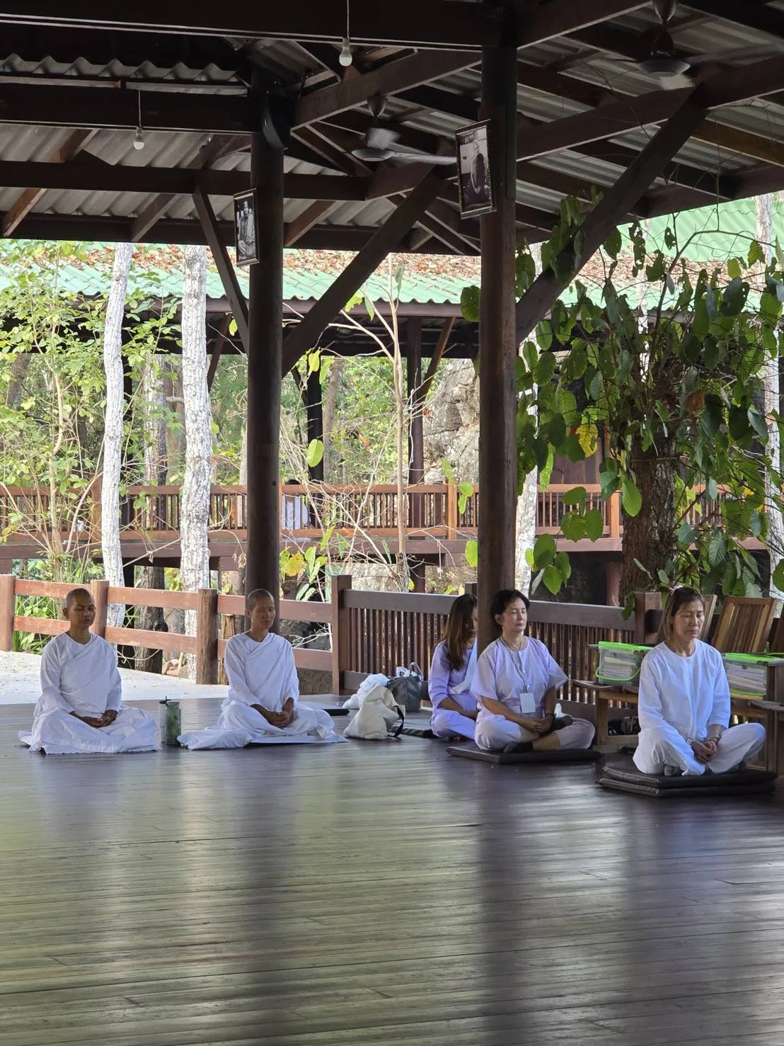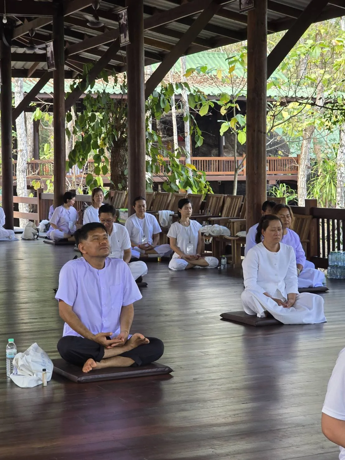 ณ สถานที่อันสงบวิเวกแห่งนี้ ผู้ปฏิบัติธรรมได้ตั้งใจรักษาศีล 8 อย่างเคร่งครัด ตื่นแต่ตี 4 เพื่อเริ่มการปฏิบัติกรรมฐานด้วยการนั่งสมาธิและเดินจงกรมอย่างต่อเนื่องยาวนานไปจนถึงเวลา 3 ทุ่ม โดยมีช่วงพักเพื่อเปลี่ยนอิริยาบถเป็นระยะๆ