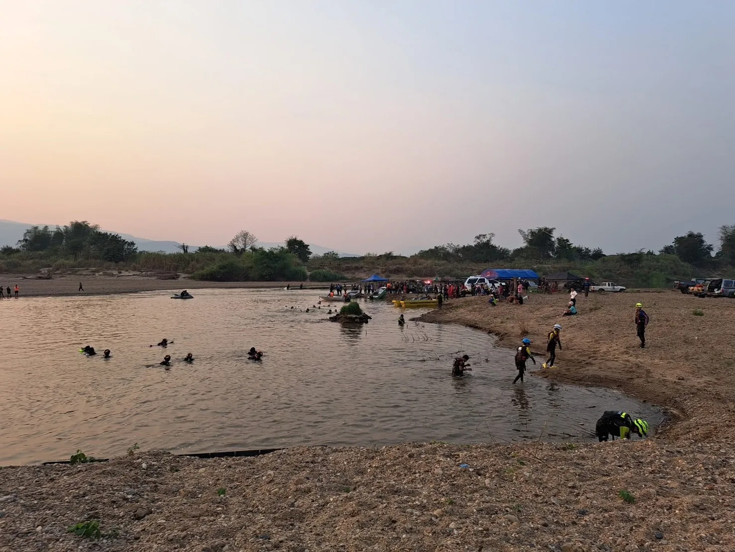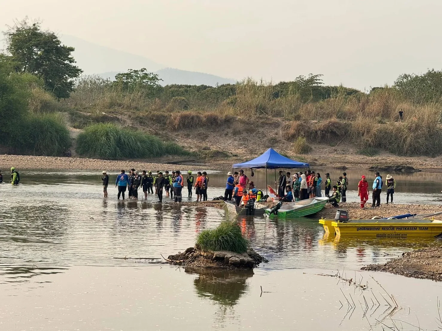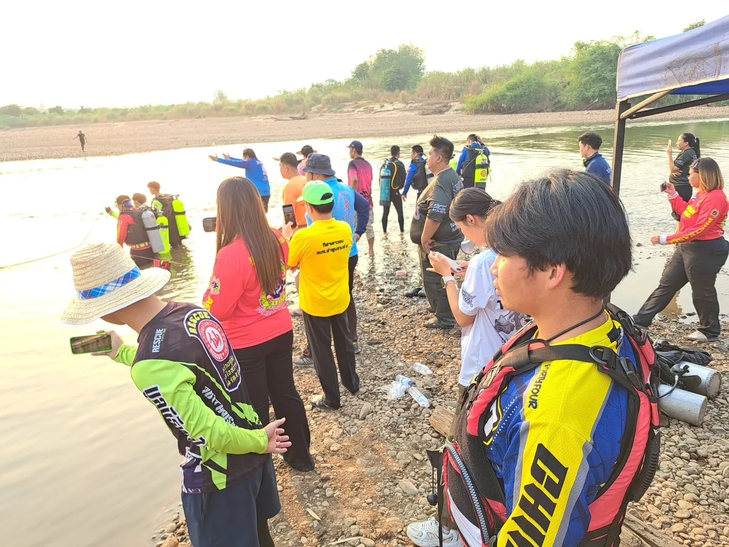 คืบหน้ากรณีเช้าวันที่ 15 มี.ค.2568 ทางกู้ชีพและกู้ภัย มาจากหลายพื้นที่ใน จ.เชียงใหม่และมาจากลำปาง ลำพูน พร้อมด้วยประดาน้ำ 5 กว่า 100 ชีวิตได้ออกหา“ต้นกล้า โซดาปาดหน้าแก้ว” ชมรมตอบโต้ภัยพิบัติอำเภอจอมทอง และ1 ในสมาชิกประดาน้ำ5 รุ่น2 ที่สูญหายในน้ำปิง พื้นที่ บ้านท่าหนองหลวงเขตติดต่อ ต.สบแปะ อ.จอมทอง กับ อ.ฮอด จ.เชียงใหม่ ชึ่งได้ตั้งศูนย์ค้นหากลางหาดทรายน้ำปิงใกล้จุดศูนย์หาย ชึ่งเป็นแหล่งใกล้กับท่าทรายดูดทราย