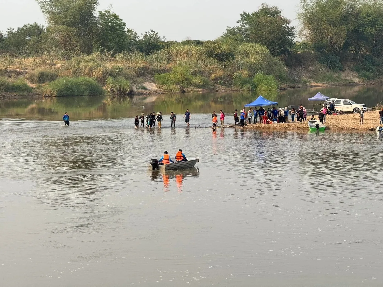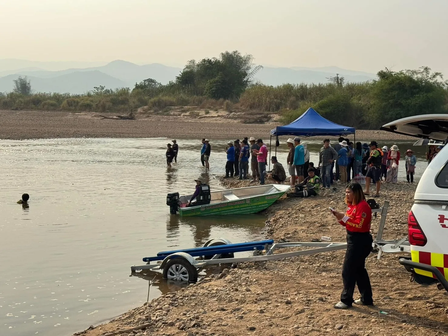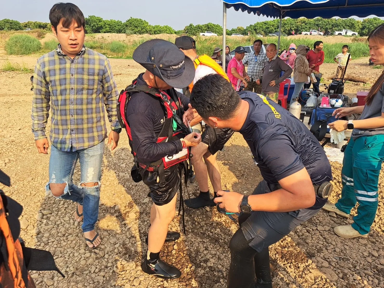 คืบหน้ากรณีเช้าวันที่ 15 มี.ค.2568 ทางกู้ชีพและกู้ภัย มาจากหลายพื้นที่ใน จ.เชียงใหม่และมาจากลำปาง ลำพูน พร้อมด้วยประดาน้ำ 5 กว่า 100 ชีวิตได้ออกหา“ต้นกล้า โซดาปาดหน้าแก้ว” ชมรมตอบโต้ภัยพิบัติอำเภอจอมทอง และ1 ในสมาชิกประดาน้ำ5 รุ่น2 ที่สูญหายในน้ำปิง พื้นที่ บ้านท่าหนองหลวงเขตติดต่อ ต.สบแปะ อ.จอมทอง กับ อ.ฮอด จ.เชียงใหม่ ชึ่งได้ตั้งศูนย์ค้นหากลางหาดทรายน้ำปิงใกล้จุดศูนย์หาย ชึ่งเป็นแหล่งใกล้กับท่าทรายดูดทราย