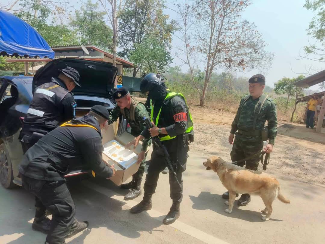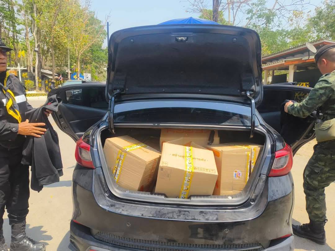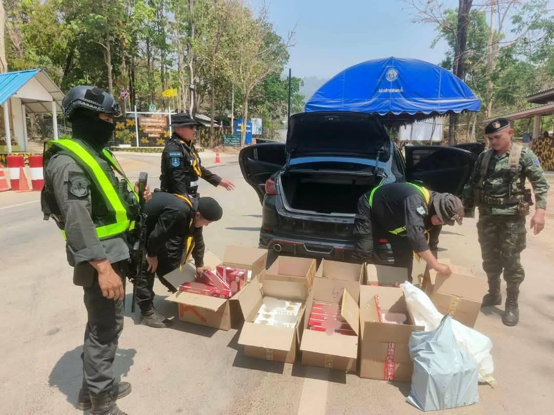 เมื่อวันที่ 17 มีนาคม 2568เจ้าหน้าที่ทหารพราน กองร้อยทหารพรานที่ 3504 หน่วยเฉพาะกิจกรมทหารพรานที่ 35 พร้อมด้วย ชุดสุนัขทหาร กองกำลังนเรศวร และเจ้าหน้าที่ตำรวจ กองบังคับการปฏิบัติการพิเศษ บก.สส.ภาค 6 ระหว่างปฏิบัติหน้าที่ประจำจุดตรวจบ้านพะละ อ.แม่ระมาด จ.ตาก ได้เรียกตรวจรถยนต์เก๋ง ยี่ห้อมาสด้า สีดำ หมายเลขทะเบียน 3 ขญ 31XX กทม. โดยมี นายณัฐฯ (ขอสงวนนามสกุล) อายุ 26 ปี ภูมิลำเนา กรุงเทพมหานคร เป็นผู้ขับขี่ จากการซักถามในเบื้องต้นมีพิรุธ เจ้าหน้าที่จึงขอตรวจค้นโดยละเอียด บริเวณกระโปรงท้ายรถเจ้าหน้าที่ตรวจพบบุหรี่ จำนวน 253 ห่อ ทั้งหมด 2,530 ซอง บรรจุอำพรางมาในกล่องพัสดุบริษัทขนส่งเอกชน