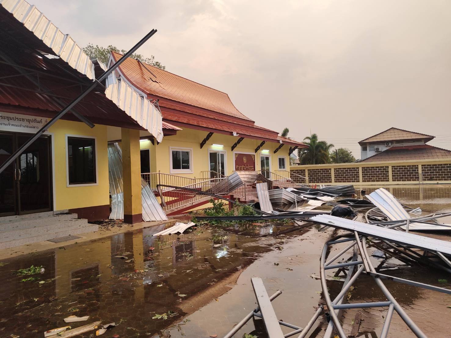 นายรุ่งโรจน์ ตันวุฒิ นายอำเภอแม่ลาว เปิดเผยว่า พายุเกิดนาน 30 นาที อำเภอแม่ลาวมีความเสียหาย 15 หมู่บ้านใน 4 ตำบลคือ ตำบลจอมหมอกแก้ว, ป่าก่อดำ, บัวสลี และตำบลดงมะดะ ตำบลที่ได้รับความเสียหายหนักสุดคือ ตำบลจอมหมอกแก้วและตำบลป่าก่อดำ สถานที่ราชการได้รับความเสียหาย 3 แห่งคือ โรงเรียนอนุบาลจอมหมอกแก้ว โรงเรียนป่าก่อดำ โรงพยาบาลแม่ลาว วัดได้รับความเสียหาย 1 แห่งคือวัดห้วยส้านดอนจั่น มีผู้ได้รับบาดเจ็บ 4 ราย แขนหัก 1 ราย หน้าต่างพัดใส่จนสลบ 1 ราย ส่งไปรักษาพยาบาลที่โรงพยาบาลเชียงรายประชานุเคราะห์ โรงพยาบาลแม่ลาวตึกผู้ป่วยในหลังคาได้รับความเสียหาย ไม่สามารถให้บริการประชาชนได้ ต้องใช้เวลาปรับปรุงฟื้นฟู 3-5 วัน ส่วนผู้ป่วยได้ส่งต่อไปรักษาที่โรงพยาบาลเชียงรายประชานุเคราะห์และโรงพยาบาลสมเด็จพระญาณสังวร ที่อำเภอเวียงชัย (มีเสียงสัมภาษณ์)