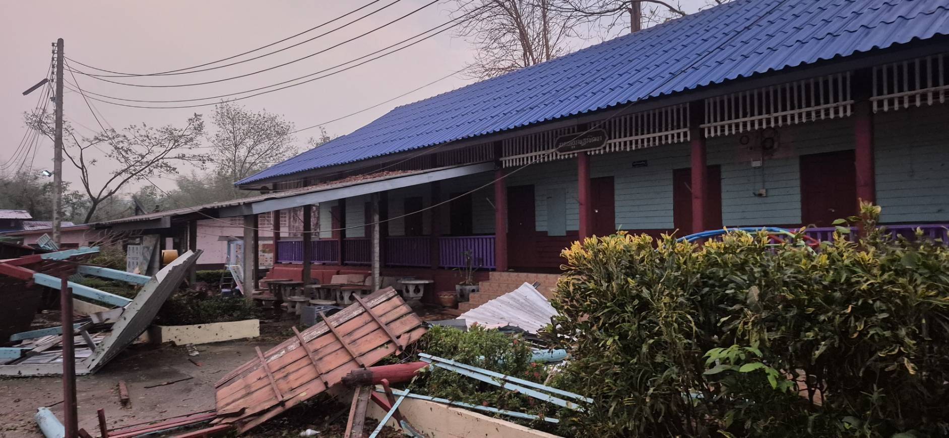 จากภาพวงจรปิด เหตุการณ์ดังกล่าวเกิดขึ้นเมื่อเวลาประมาณ 18.20 น. ของวันที่ 18 มี.ค.68 ที่บริเวณสามแยกปากทางแม่สรวย พื้นที่อำเภอแม่ลาว แรงลมทำให้มีต้นไม้กิ่งไม้หักโค่นบางจุดขวางถนน อาคารบ้านเรือนหลายหลังได้รับความเสียหาย โดยเฉพาะส่วนของหลังคาบ้าน ที่โรงเรียนอนุบาลจอมหมอกแก้วเวทีมาตรฐานของโรงเรียนถึงกับพังลงมา มีป้ายด้านหน้าปั๊มน้ำมันเชื้อเพลิงพัง ถนนบางสายไม่สามารถสัญจรไปมาได้โดยสะดวก บางจุดนอกจากจะมีฝนและพายุลมกระโชกแรงแล้วยังมีลูกเห็บตกลงมาอีกด้วย ทั้งนี้เหตุพายุกระโชกแรงดังกล่าวนี้ ทำให้มีผู้บาดเจ็บ 4 ราย และบาดเจ็บสาหัส 2 ราย มีสถานที่ราชการได้รับความเสียหายทั้งโรงเรียน โรงพยาบาล และวัด