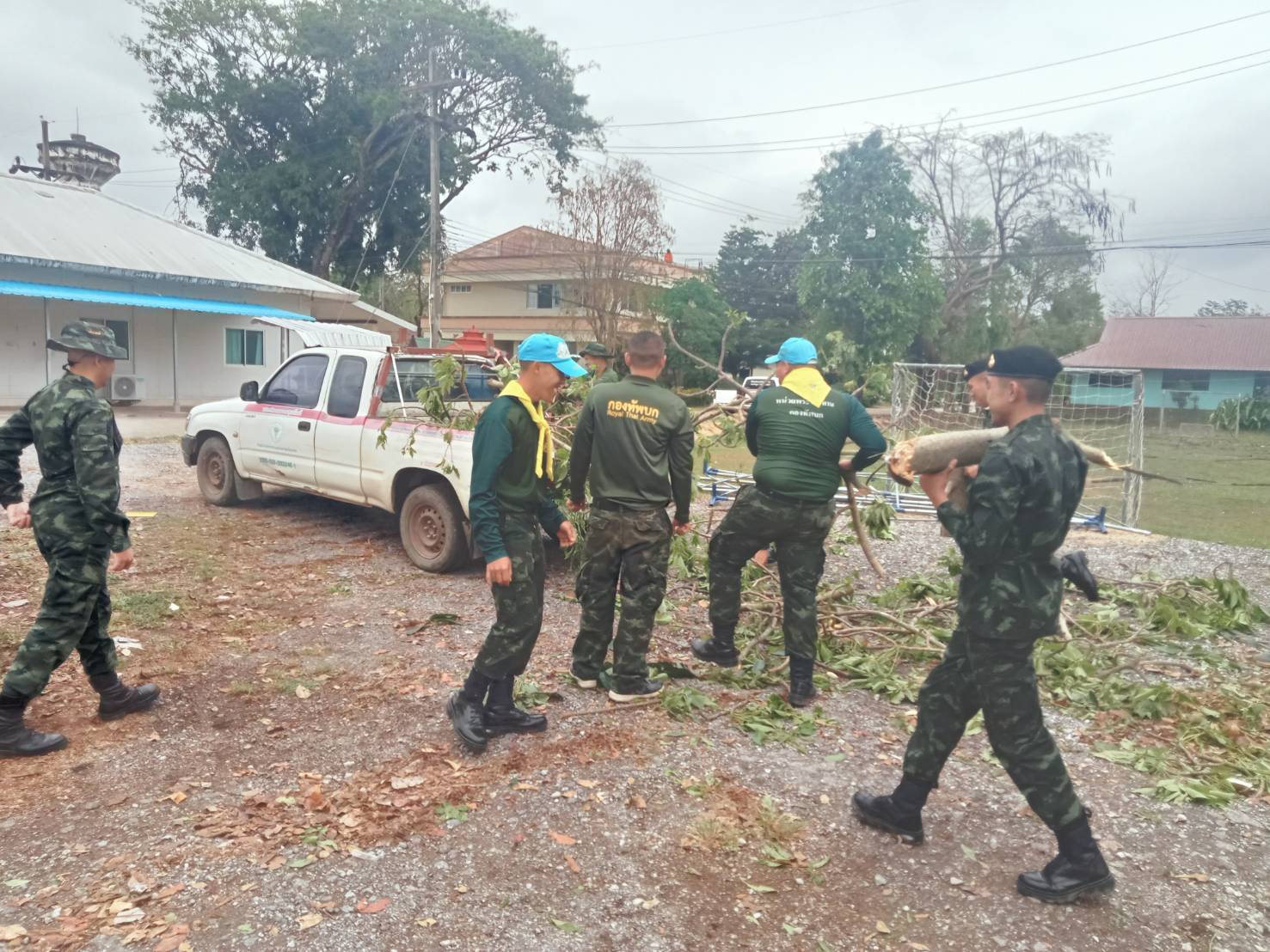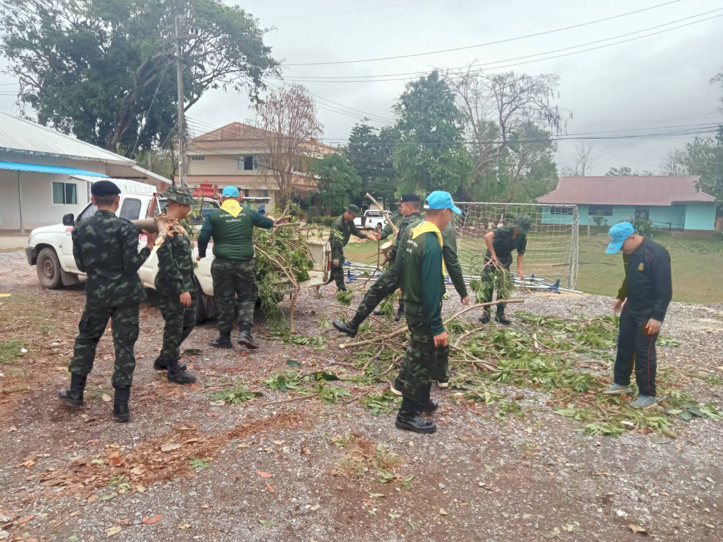 ด้าน ผช.ศ.ดร. นาวิน พรมใจสา รองอธิการบดีมหาวิทยาลัยราชภัฏเชียงราย (มร.ชร.) นำจิตอาสาจาก มร.ชร.ไปช่วยที่โรงเรียนอนุบาลจอมกมอกแก้วและโรงเรียนป่าก่อดำ ขณะที่พื้นที่อำเภออื่นๆ ทาง ปภ.รายงานอีกว่ามีพื้นที่ได้รับผลกระทบคือ อ.ธารทอง และ อ.แม่อ้อ อ.พาน,ต.แม่ข้าวต้ม และ ต.ริมกก อ.เมืองเชียงราย มีเสาไฟฟ้าและตนไม้หักโค่นตามจุดต่างๆ ทำให้ทางเทศบาลนครเชียงรายและหน่วยงานที่เกี่ยวข้องต้องเร่งตัดกิ่งไม้ต้นไม้และกู้เสาไฟฟ้าในหลายจุดเพื่อให้รถสัญจรไปมาได้ตามปกติ