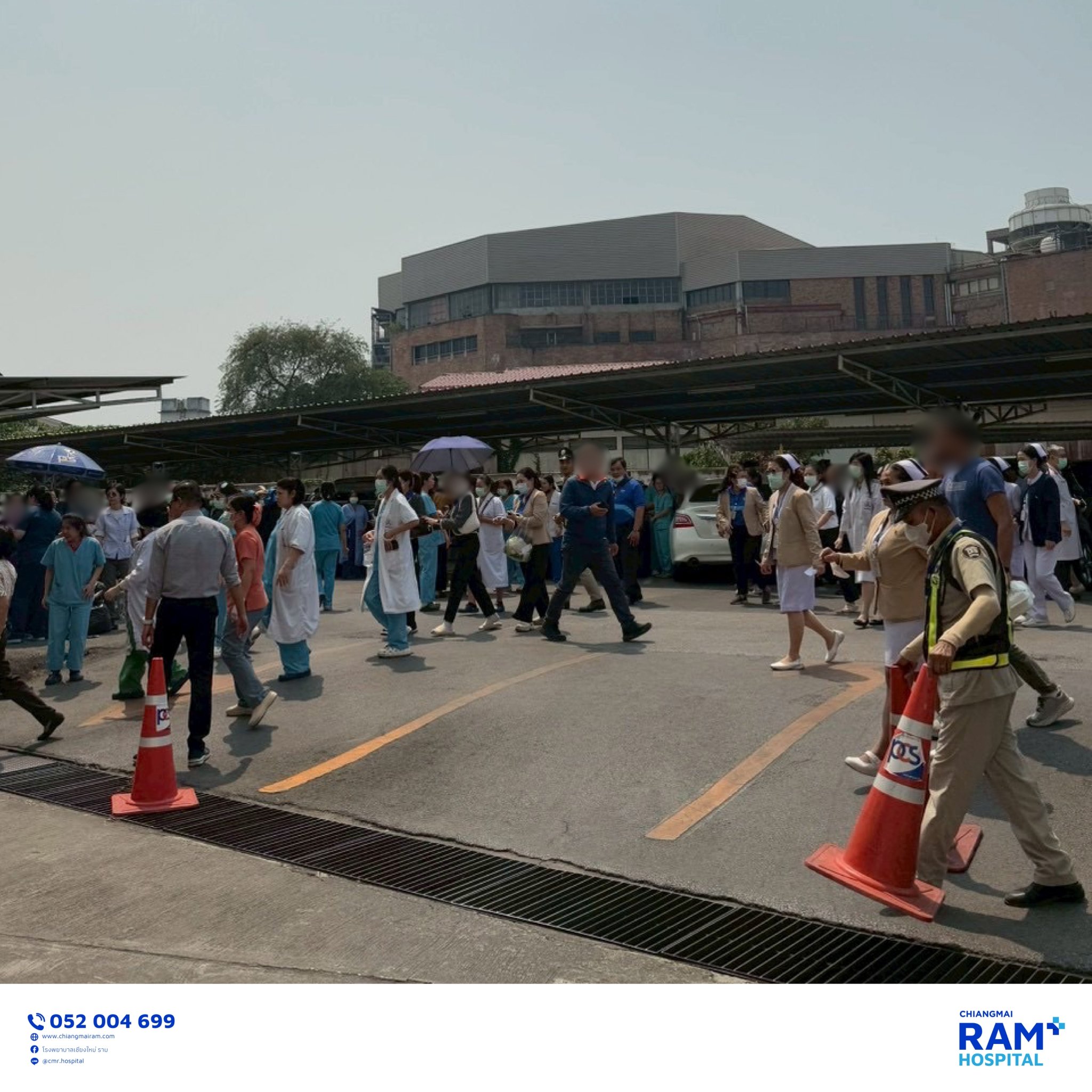 โรงพยาบาลเชียงใหม่ ราม ดำเนินการแผนฉุกเฉินรับมือเหตุแผ่นดินไหว เคลื่อนย้ายผู้ป่วยไปยังที่ปลอดภัย