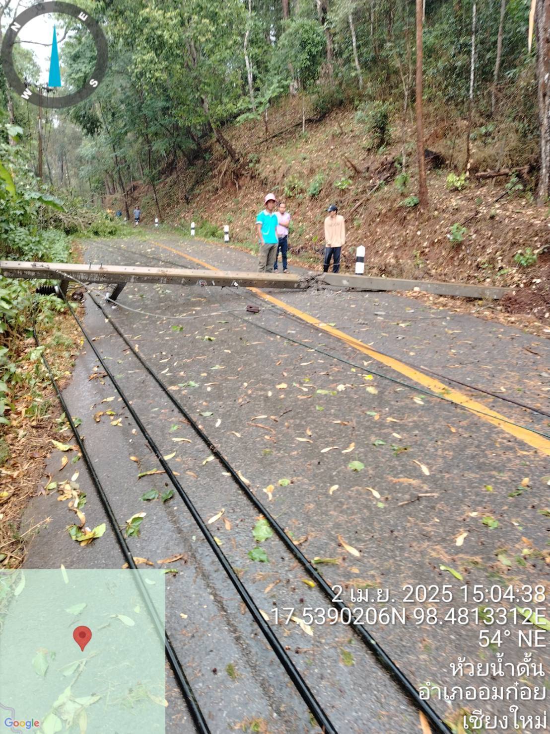 วันที่ 2 เม.ย.68 อำเภออมก๋อย ได้รับรายงานจากผู้ใหญ่บ้านในพื้นที่ตำบลยางเปียง และตำบลม่อนจอง ว่า เมื่อเวลาประมาณ 14.00 น. เกิดพายุฝนฟ้าคะนองในพื้นที่ ม.9 , ม.17 ต.ยางเปียง และ หมู่ 5 ต.ม่อนจอง อ.อมก๋อย จ.เชียงใหม่