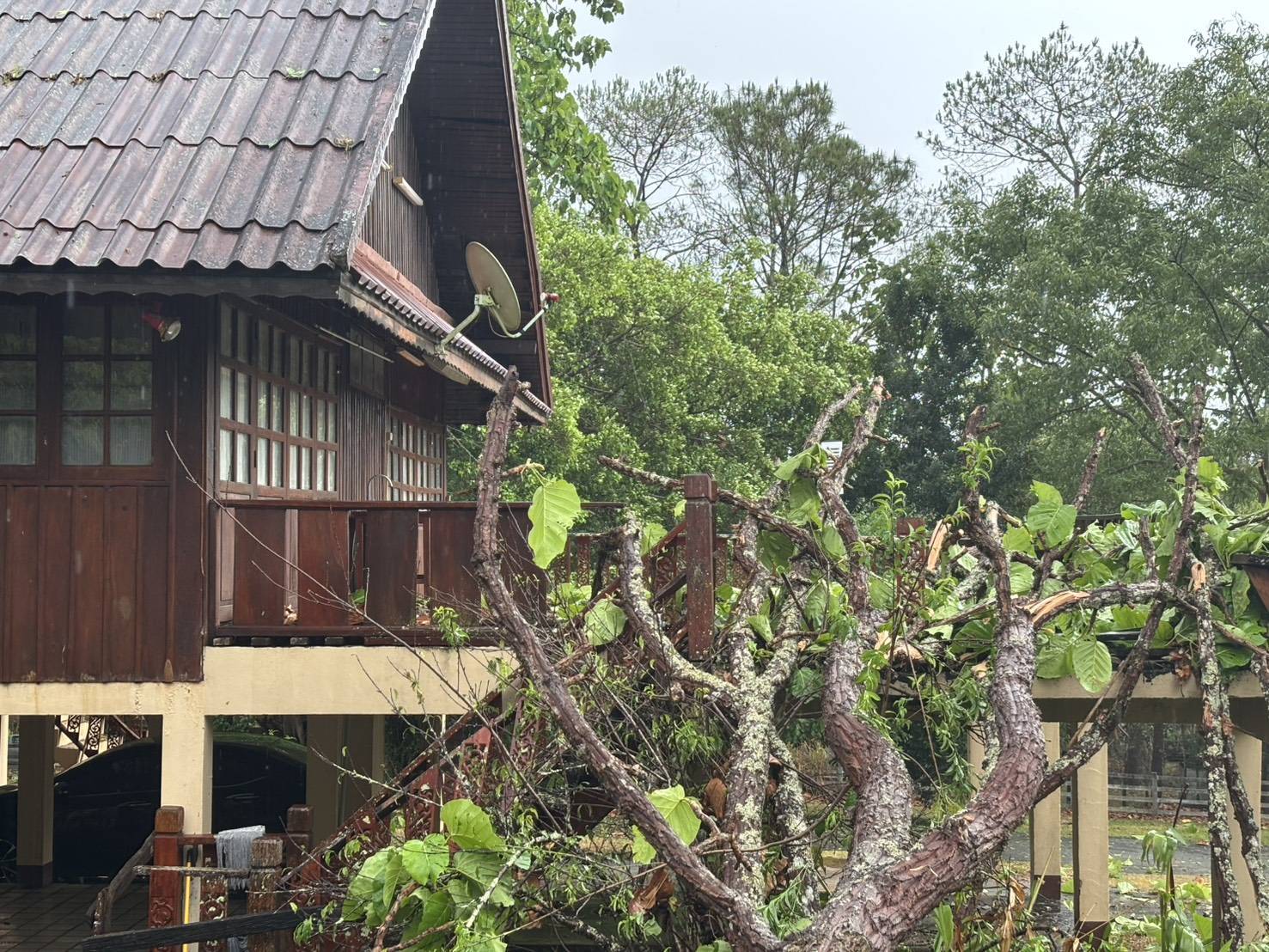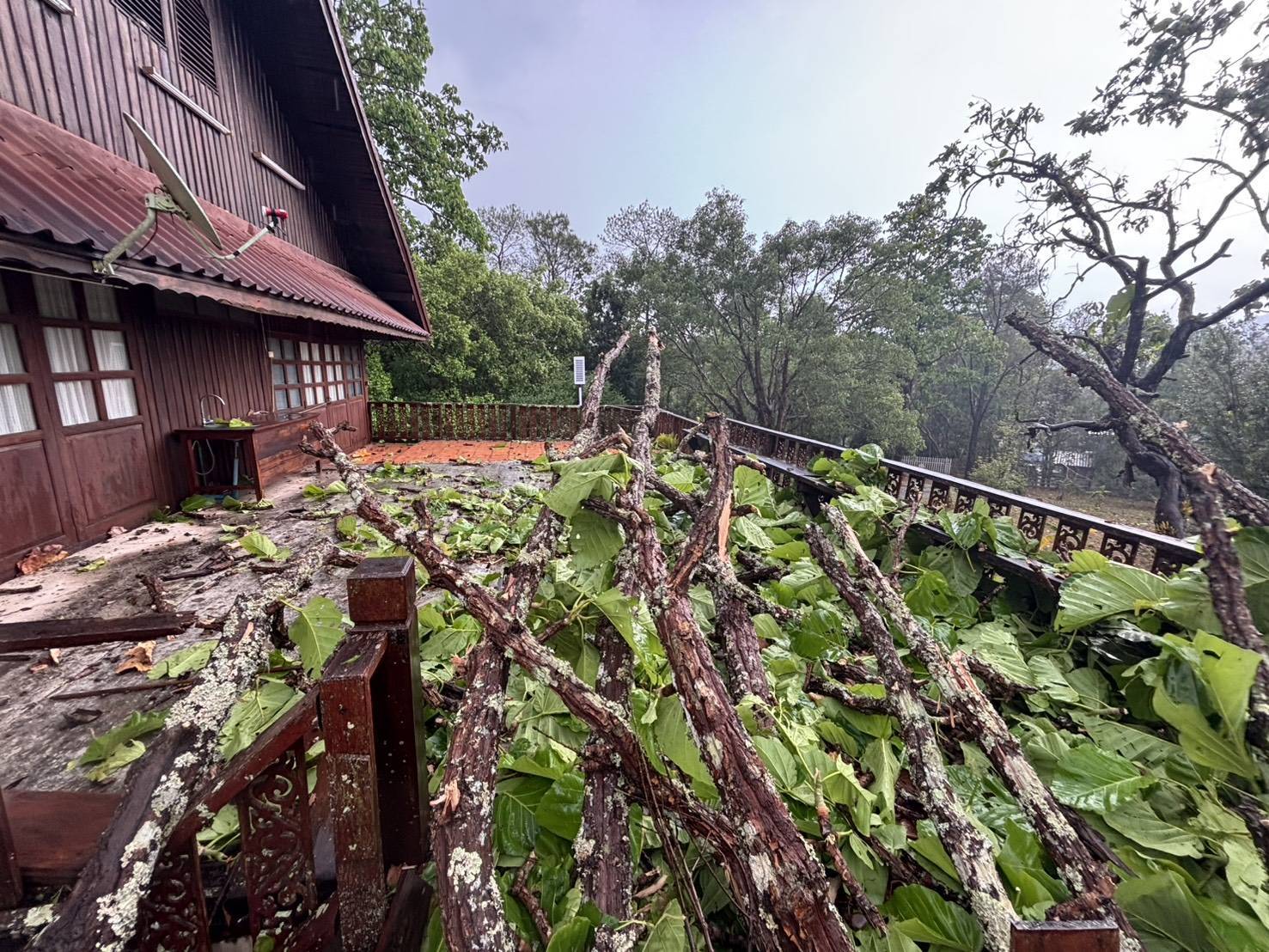 อมก๋อย อ่วม! พายุฝนฟ้าคะนองพัดถล่ม ที่ว่าการอำเภอโดนด้วย กระเบื้องแตก บ้านพักนายอำเภอ ต้นไม้ล้มทำระเบียงเสียหาย บ้านพักตำรวจ สภ.อมก๋อย 5 หลัง เสียหาย บ้านเรือนราษฎรใน 2 ตำบล กว่า 30 หลังได้รับผลกระทบ