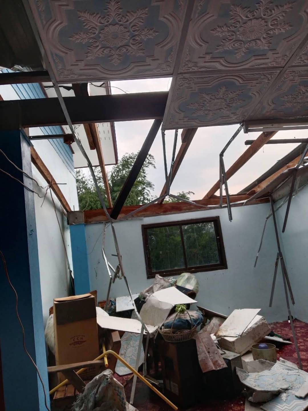 บ้านดอนสุขสันต์ หมู่ที่ 10 ตำบลศิลาเพชร ได้รับความเสียหายหลายหลัง (อยู่ระหว่างการสำรวจ)