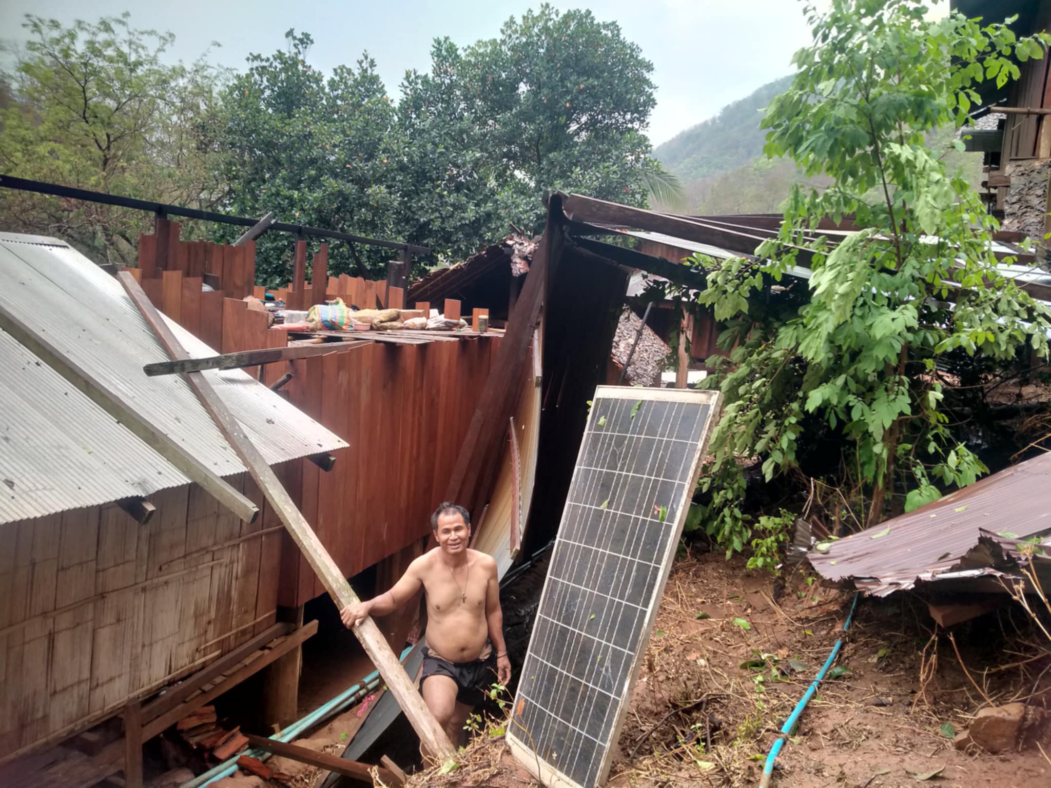 วันนี้ 7 เม.ย. 68 นายสงกรานต์ สันติกูล นายกองค์การบริหารส่วนตำบลแม่คง เปิดเผยว่าได้รับแจ้งจาก นายดนัย ใฝ่สูขสรรค์ ผู้ช่วยผู้ใหญ่บ้าน หมู่ 4 บ้านจอสิเดอร์ ต.แม่คง อ.แม่สะเรียง จ.แม่ฮ่องสอน เมื่อวันที่ 6 เม.ย. 68 เวลาประมาณ 14.50 น. ได้เกิดพายุฤดูร้อน มีฝนตกและลมกระโชกแรงส่งผลให้บ้านเรือนของประชาชนบ้านจอสิเดอร์เหนือหลังคาบ้านพัดปลิวได้รับความเสียหาย จำนวน 3 หลัง เบื้องต้นกำลังประสานรายละเอียดกับ ผช.ผญบ.จอสิเดอร์ และเตรียมทีมงานเข้าไปสำรวจความเสียหาย
