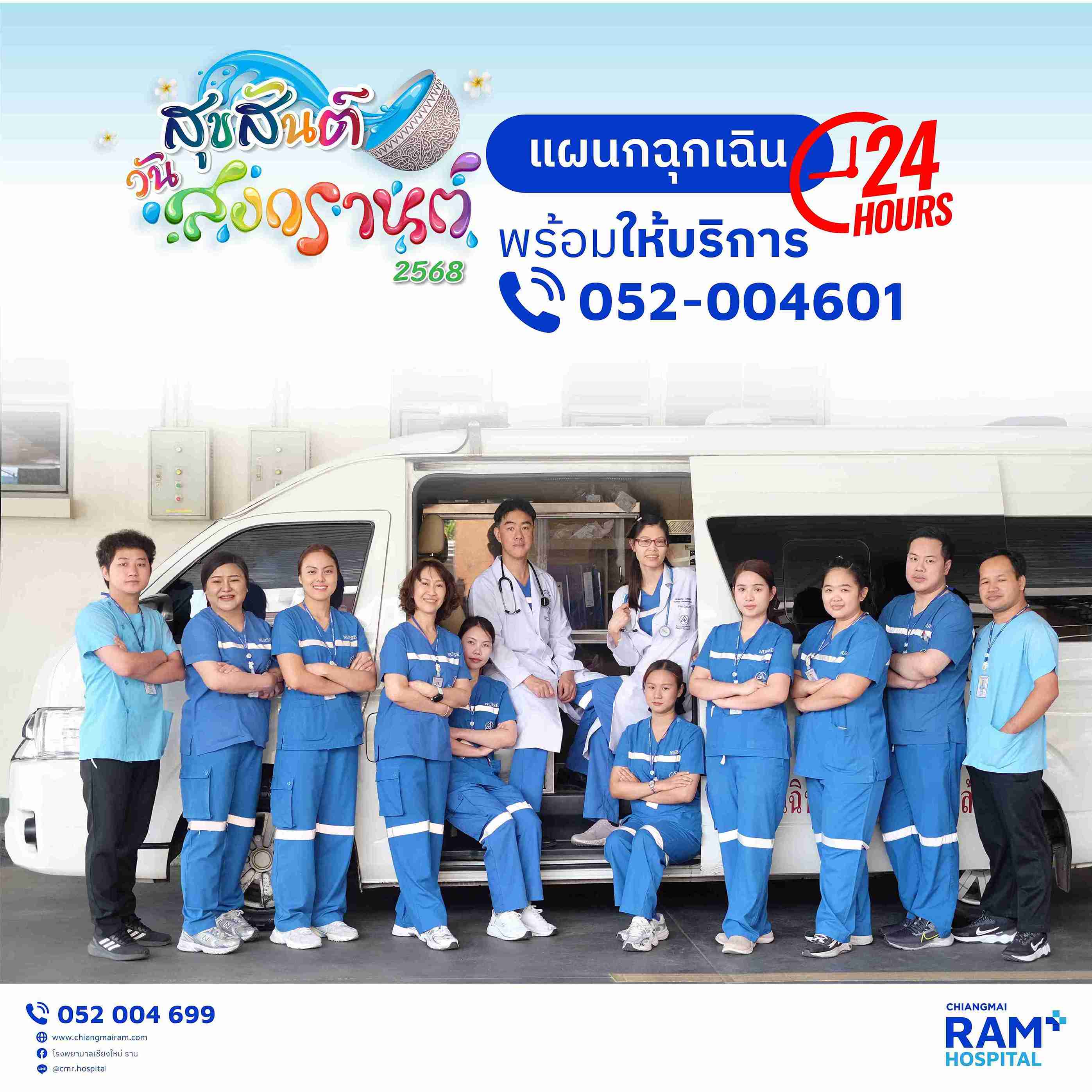 🚑 สงกรานต์นี้ ขับขี่ปลอดภัย เดินทางอุ่นใจทุกเส้นทาง แผนกฉุกเฉินโรงพยาบาลเชียงใหม่ ราม เตรียมพร้อมรับมือเหตุฉุกเฉินตลอด 24 ชั่วโมง