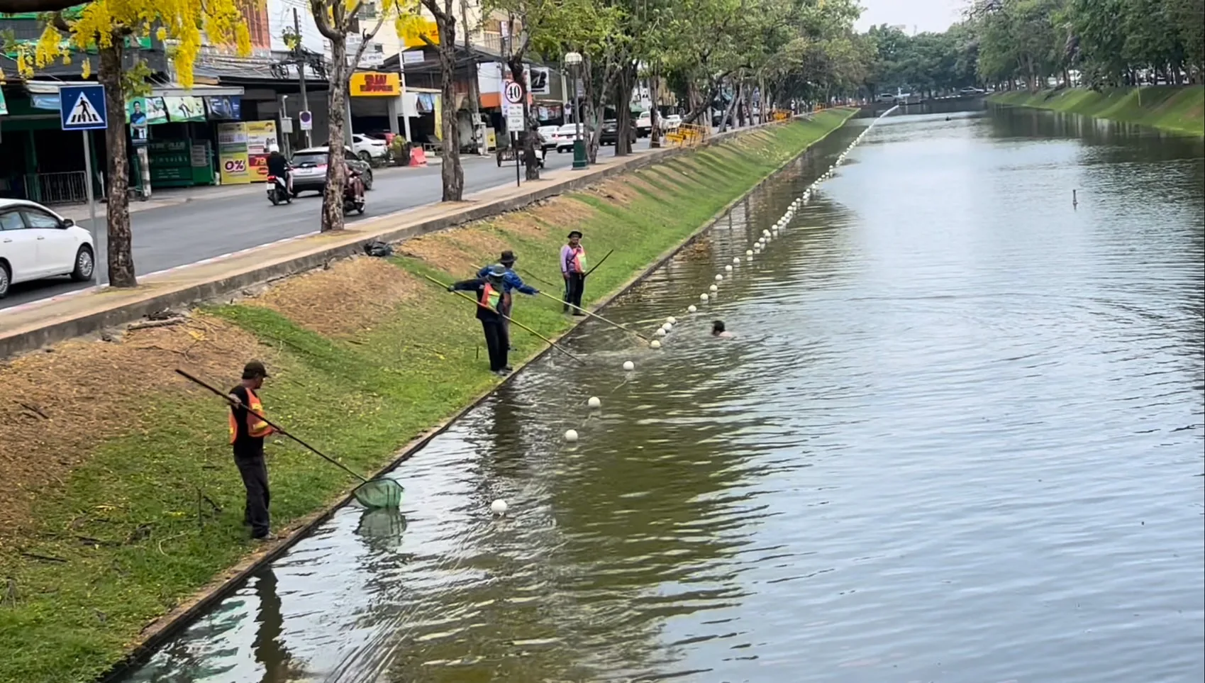 พนักงานเทศบาลนครเชียงใหม่ เก็บเศษใบไม้ทำความสะอาดคูเมืองเชียงใหม่ เตรียมเปิดพื้นที่ให้ประชาชนและนักท่องเที่ยวได้เล่นสาดน้ำในเทศกาลสงกรานต์ที่จะมีขึ้นในวันที่ 13-15 เมษายน นี้ โดยล่าสุดในวันนี้คูเมืองเชียงใหม่ โดยเฉพาะช่วงแจ่งหัวรินไปจนถึงแจ่งศรีภูมิ ซึ่งเป็นจุดที่มีผู้คนเล่นน้ำหนาแน่นพร้อมสำหรับการเล่นสาดน้ำแล้ว