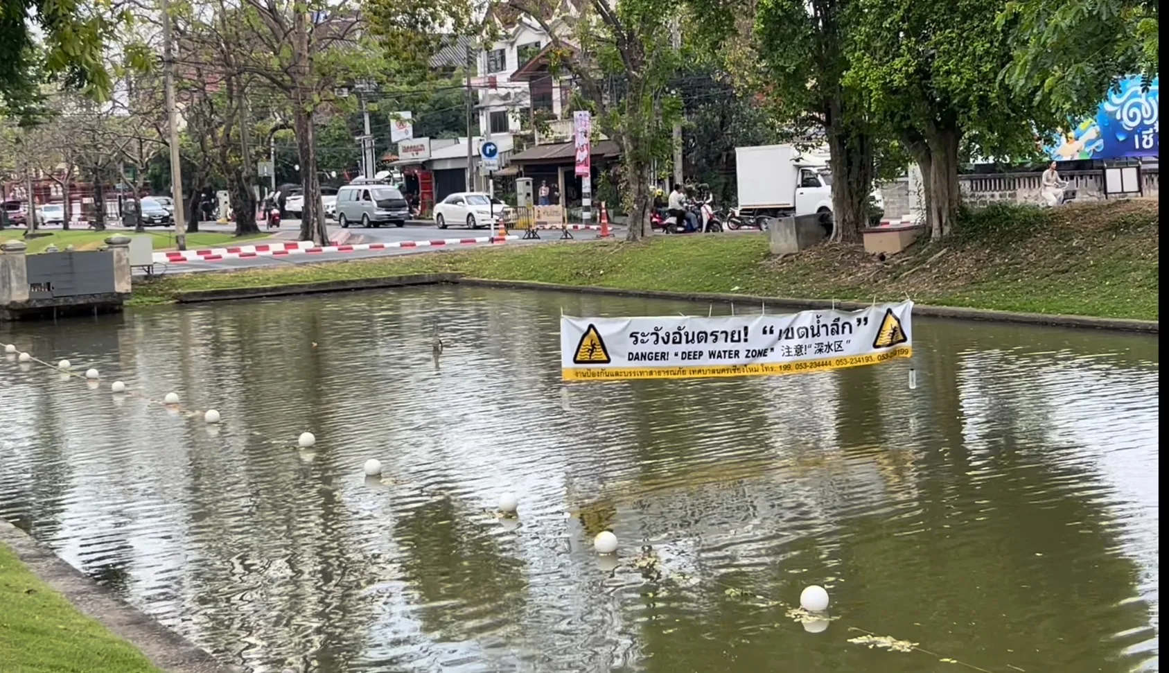 ส่วนในเรื่องความปลอดภัย งานป้องกันและบรรเทาสาธารณภัยเทศบาลนครเชียงใหม่ได้วางทุ่นกำหนดโซนสำหรับลงเล่นน้ำเพื่อความปลอดภัย ติดป้ายเตือนเขตน้ำลึกและจุดที่ห้ามลงไปเล่นน้ำเพื่อความปลอดภัยบริเวณคูเมืองเชียงใหม่ทั้งสี่ด้าน รวมทั้งยังมีเจ้าหน้าที่ชุดเคลื่อนที่เร็วในการตรวจตราความเรียบร้อยและเฝ้าระวังเหตุต่างๆ ที่จะเกิดขึ้นโดยรอบคูเมืองและจุดที่เป็นย่านชุมชน