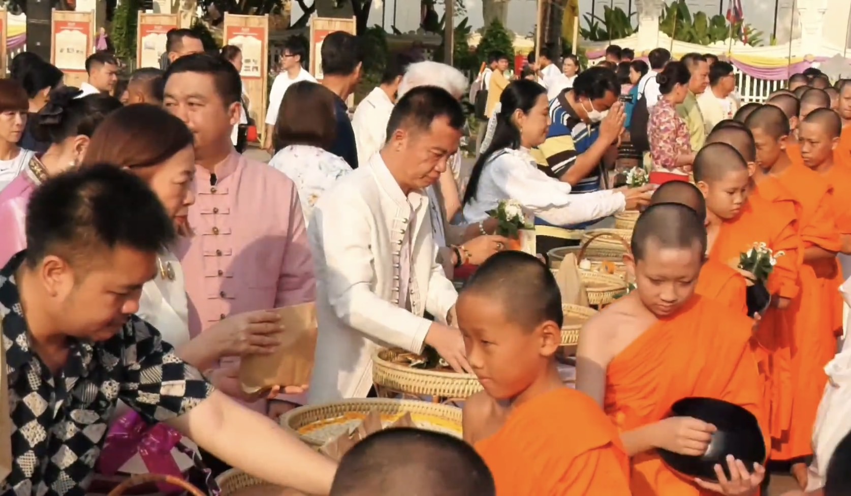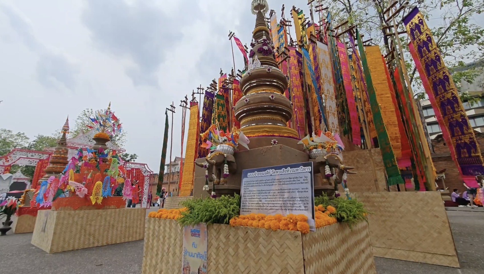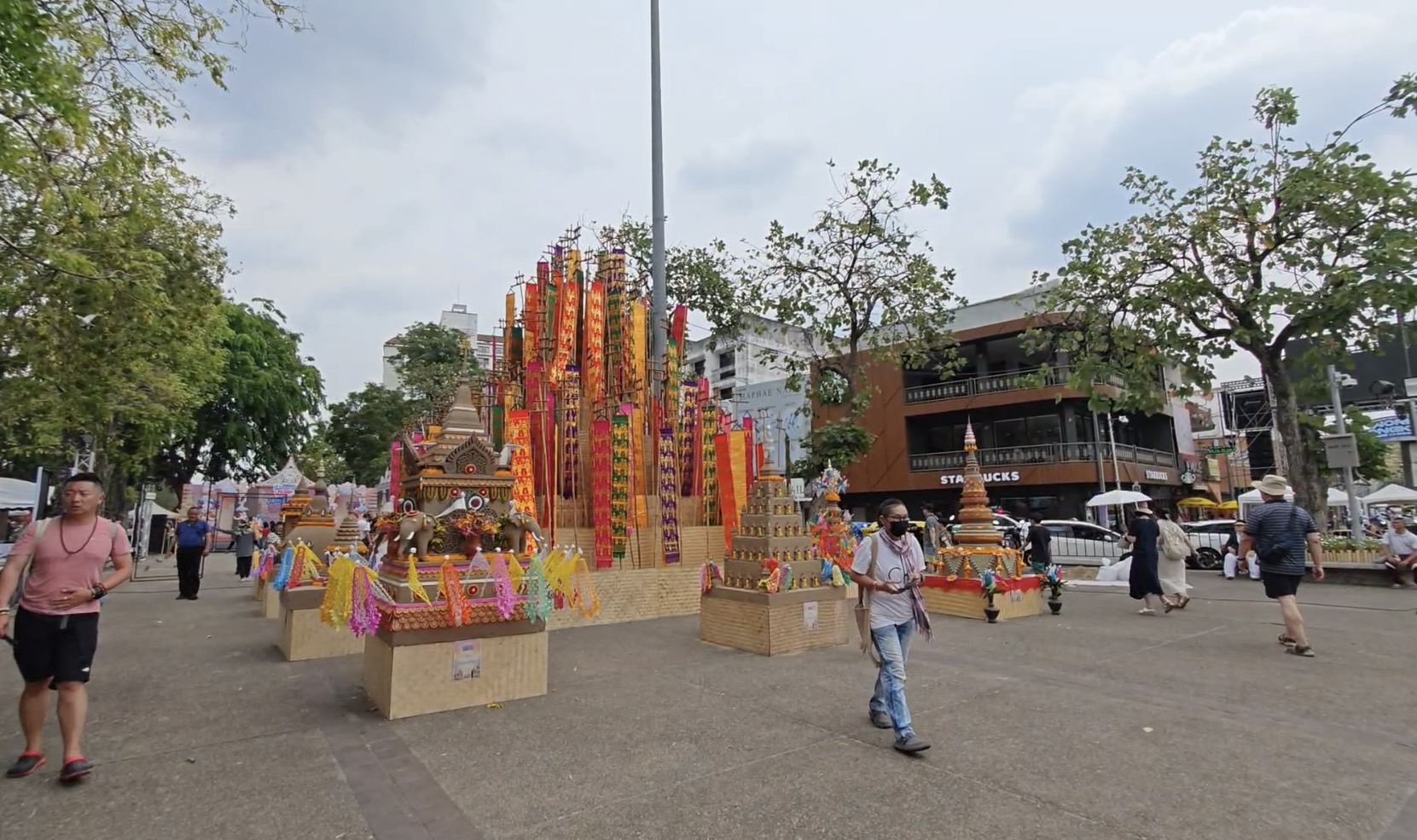 ขณะที่เช้าวันนี้ที่บริเวณลานพระบรมราชานุสาวรีย์สามกษัตริย์ นายนิรัตน์ พงษ์สิทธิถาวร ผู้ว่าราชการจังหวัดเชียงใหม่ นำประชาชนชาวเชียงใหม่ และนักท่องเที่ยว ร่วมพิธียอสวยไหว้สา พระญามังราย ครบรอบ 729 ปี การสถาปนาเมืองเชียงใหม่ โดยทำบุญตักบาตรพระสงฆ์ จำนวน 59 รูป เนื่องในวันสถาปนาเมืองเชียงใหม่ 729 ปี เพื่อความเป็นสิริมงคล เริ่มต้นป๋าเวณีปี๋ใหม่เมืองเชียงใหม่ และระลึกถึงบูรพกษัตริย์ผู้สร้างเมืองเชียงใหม่ทั้ง 3 พระองค์ ประกอบด้วย พญามังราย พ่อขุนรามคำแหง และ พญางำเมือง