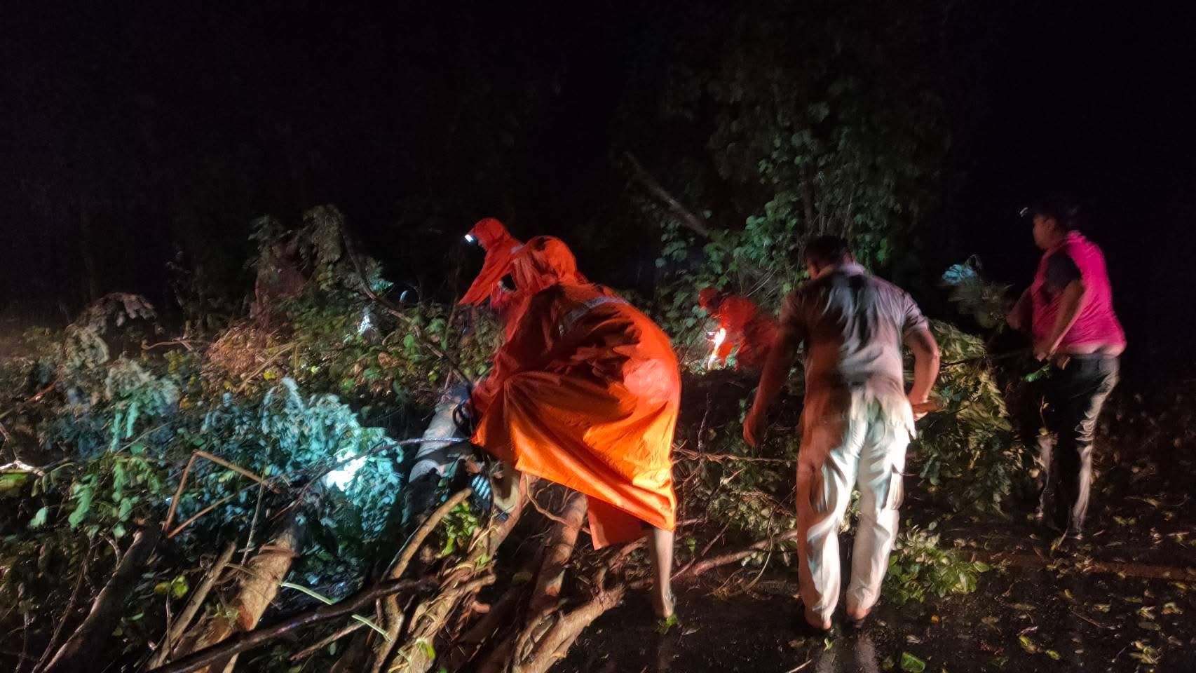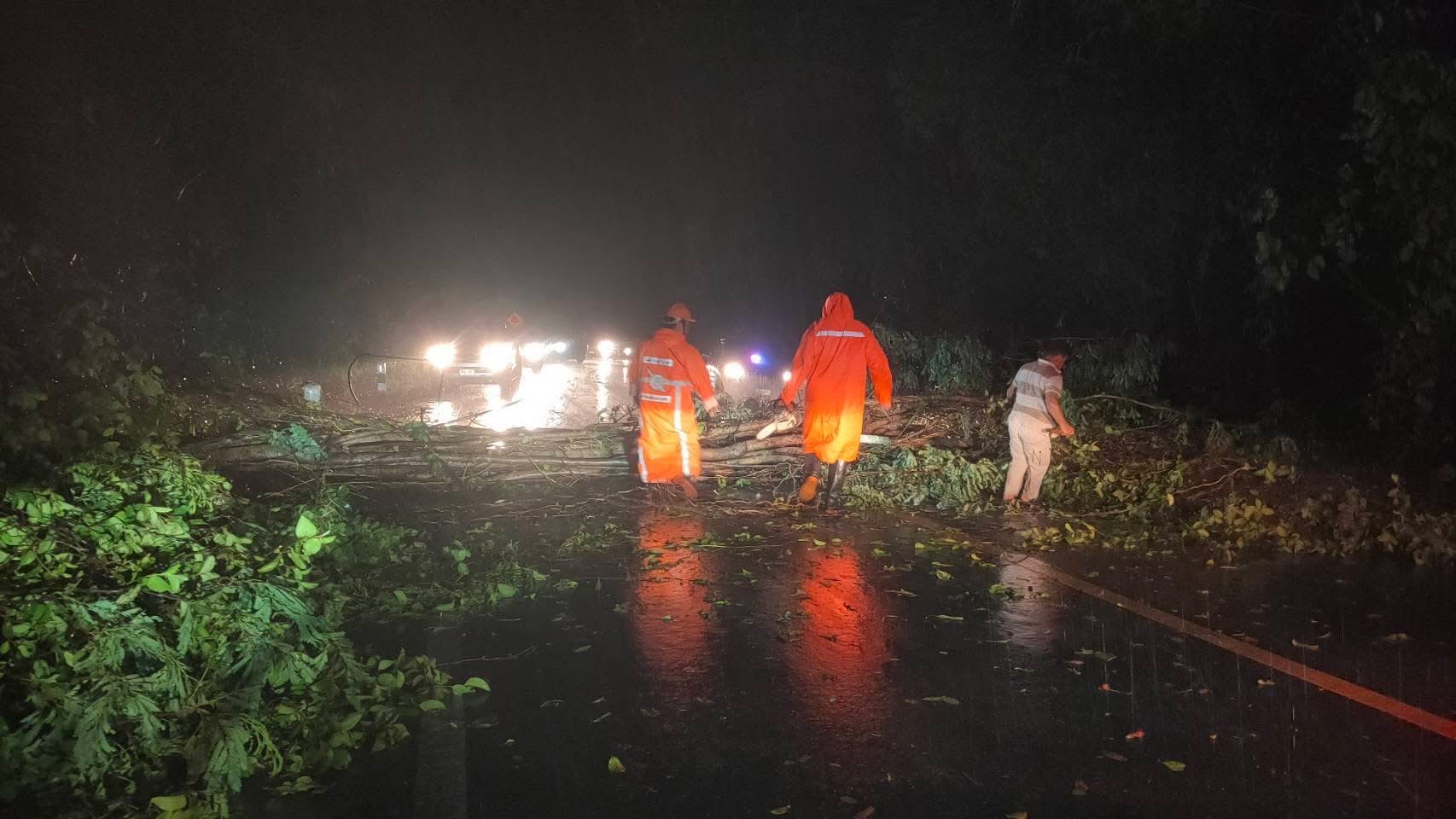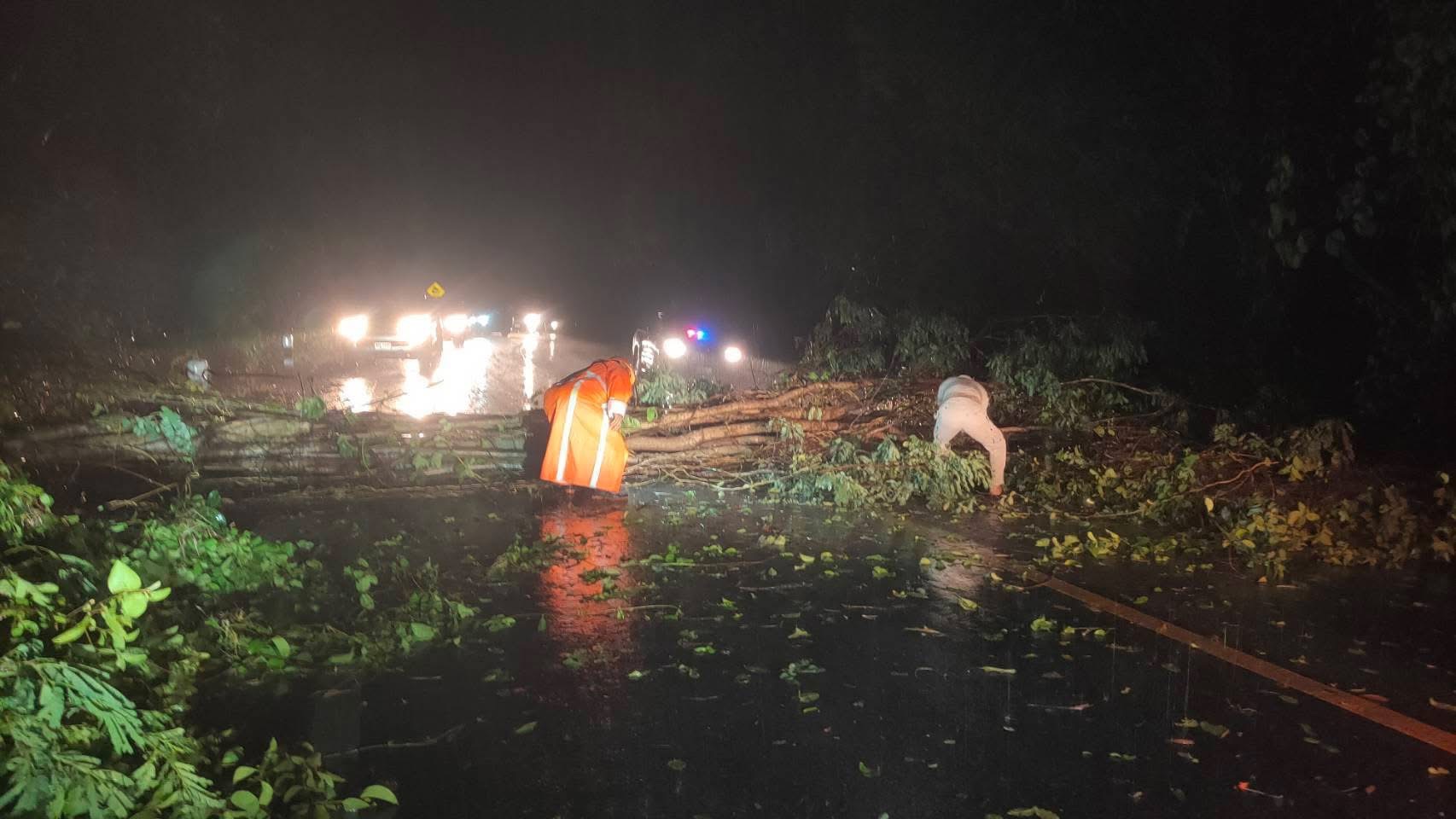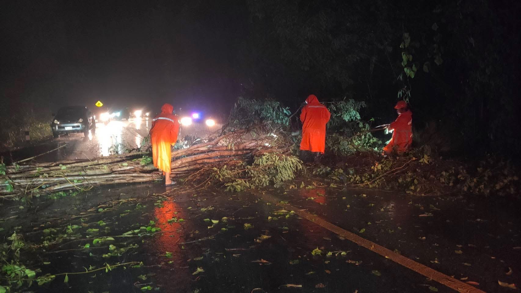 ต้นไม้ขนาดใหญ่ล้มขวางถนนแม่อาว-ทุ่งหัวช้าง เจ้าหน้าที่เร่งเคลียร์เส้นทางหลังพายุฝน-ลมแรง