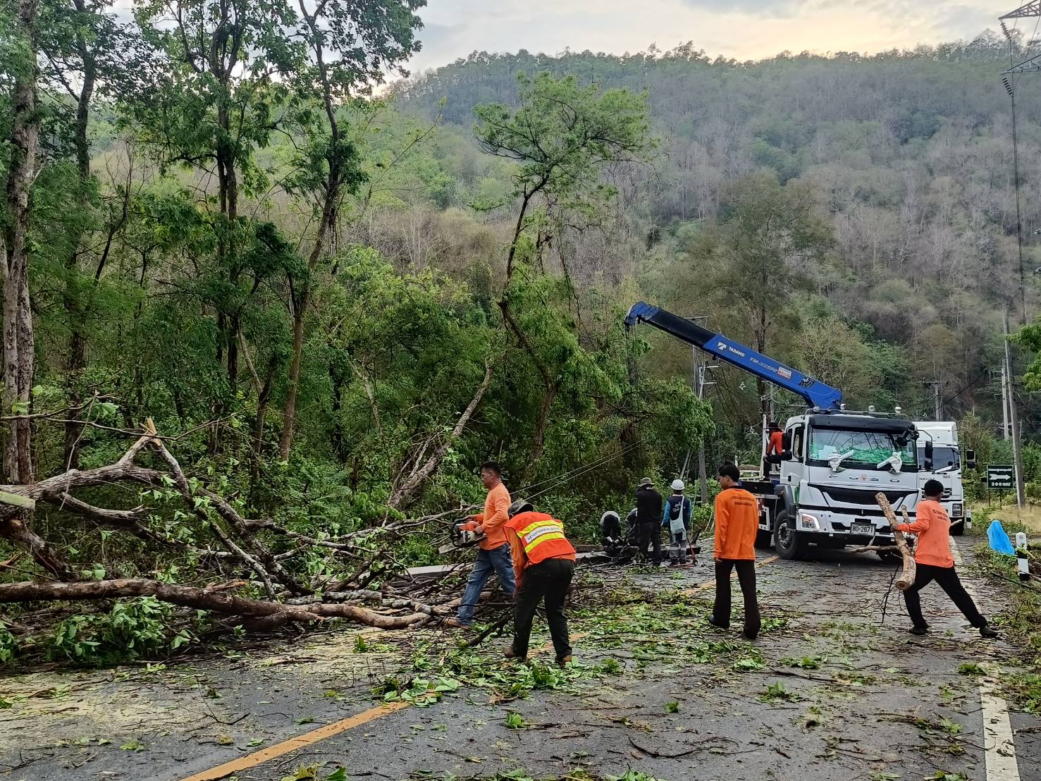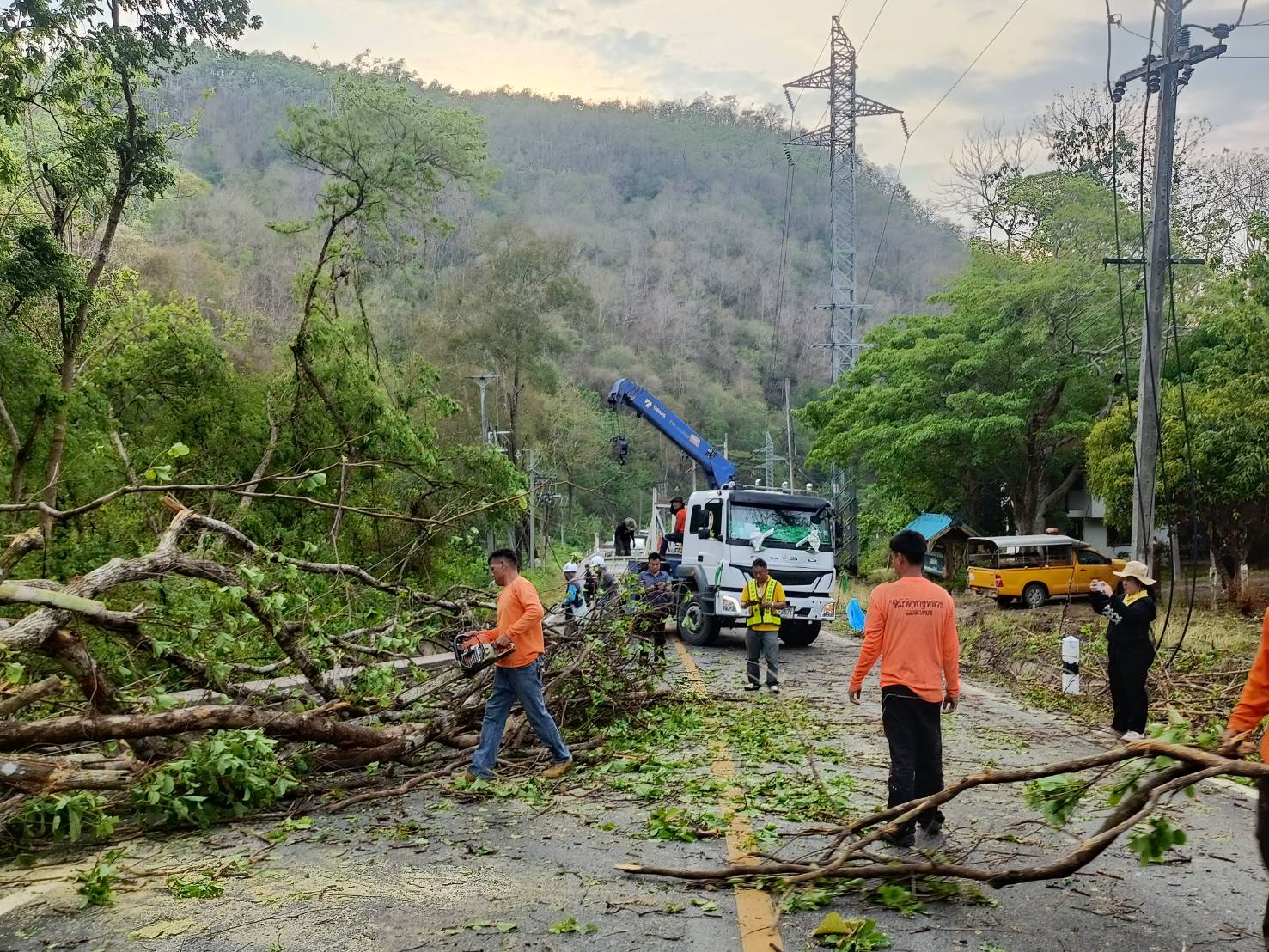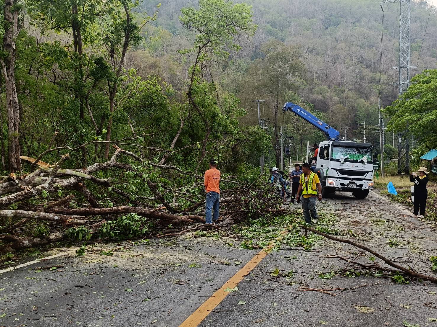 ขณะนี้ทางเจ้าหน้าที่หมวดทางหลวงแม่สะเรียง เจ้าหน้าที่การไฟฟ้าส่วนภูมิภาค และ สภ.แม่สะเรียง โดย เจ้าหน้าที่จุดตรวจหน้าถ้ำ ได้อำนวยความสะดวก และเร่งเคลียร์พื้นที่ ดำเนินการตัดกระแสไฟฟ้า และ เร่งตัดทอนต้นไม้ที่ล้มขวางถนน ออกจุดแรก บริเวณ หน้าหน่วยป้องกันรักษาป่าแม่กะไน หลักกิโลเมตรที่ 188 ซึ่งเป็นจุดแรก ห่างจากตัวเมืองแม่สะเรียง ประมาณ 2 กิโลเมตร หลังจากนั้น เจ้าหน้าที่ได้ดำเนินการขึ้นไปเปิดเส้นทางอีก 3 จุดที่เหลือต่อไป ขอให้ประชาชนผู้ใช้เส้นทางสายนี้ เดินทางด้วยความระมัดระวัง บางแห่ง จนท.กฟภ.ยังไม่สามารถปล่อยกระแสไฟได้และอยู่ระหว่างลงพื้นที่ปฎิบัติงานเข้าตรวจสอบความเสียหาย