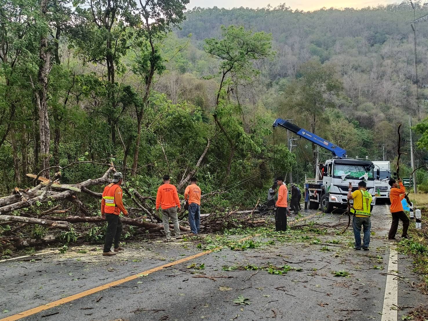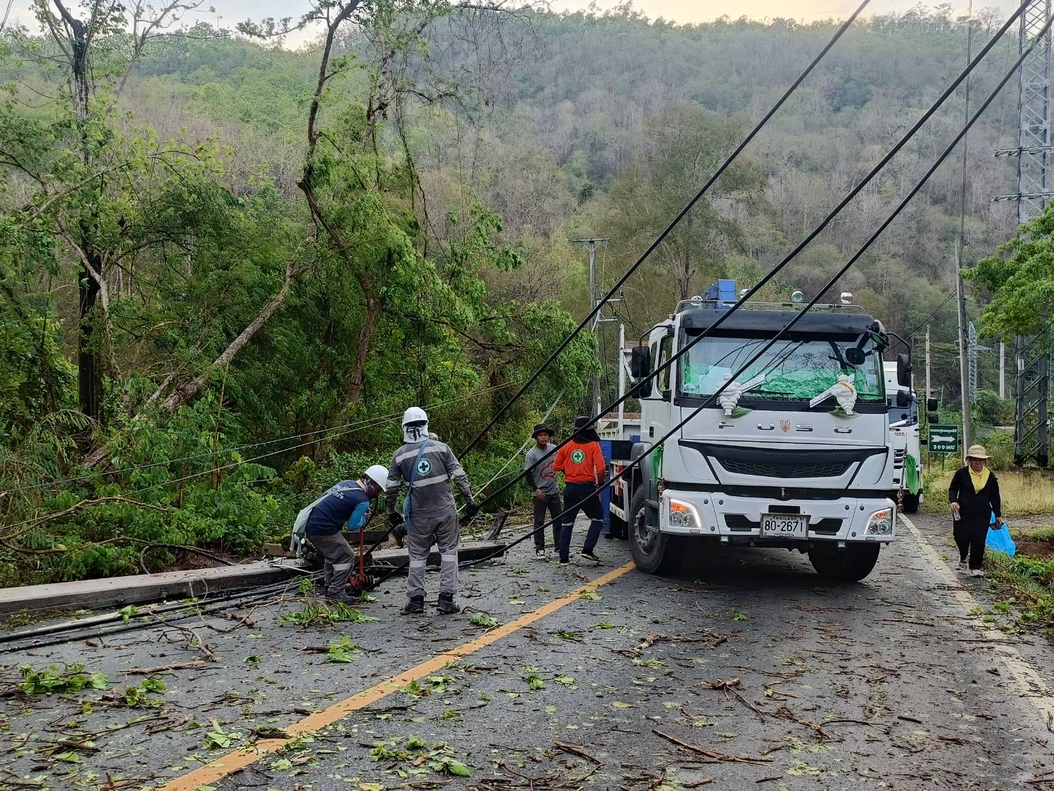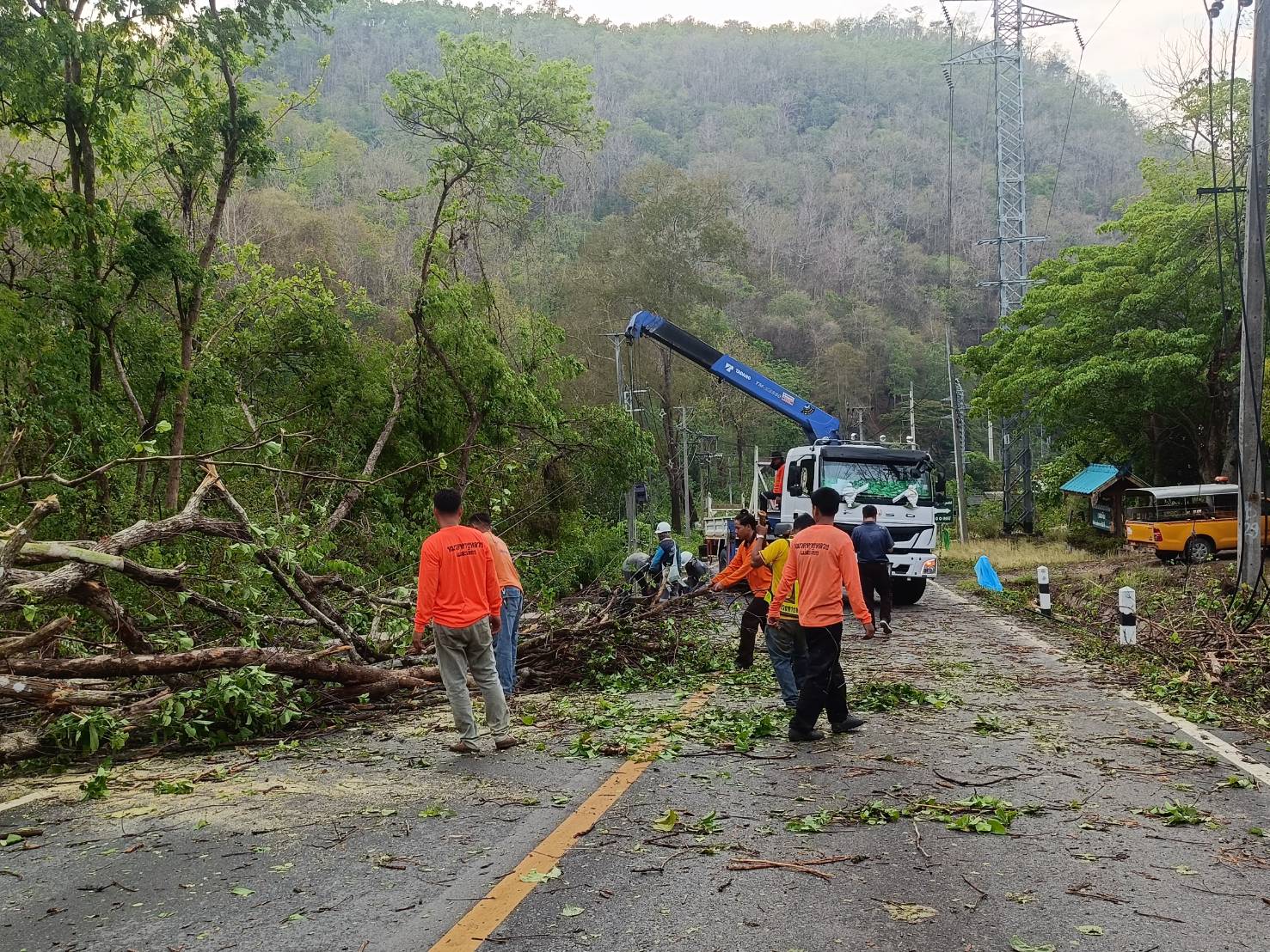ขณะนี้ทางเจ้าหน้าที่หมวดทางหลวงแม่สะเรียง เจ้าหน้าที่การไฟฟ้าส่วนภูมิภาค และ สภ.แม่สะเรียง โดย เจ้าหน้าที่จุดตรวจหน้าถ้ำ ได้อำนวยความสะดวก และเร่งเคลียร์พื้นที่ ดำเนินการตัดกระแสไฟฟ้า และ เร่งตัดทอนต้นไม้ที่ล้มขวางถนน ออกจุดแรก บริเวณ หน้าหน่วยป้องกันรักษาป่าแม่กะไน หลักกิโลเมตรที่ 188 ซึ่งเป็นจุดแรก ห่างจากตัวเมืองแม่สะเรียง ประมาณ 2 กิโลเมตร หลังจากนั้น เจ้าหน้าที่ได้ดำเนินการขึ้นไปเปิดเส้นทางอีก 3 จุดที่เหลือต่อไป ขอให้ประชาชนผู้ใช้เส้นทางสายนี้ เดินทางด้วยความระมัดระวัง บางแห่ง จนท.กฟภ.ยังไม่สามารถปล่อยกระแสไฟได้และอยู่ระหว่างลงพื้นที่ปฎิบัติงานเข้าตรวจสอบความเสียหาย