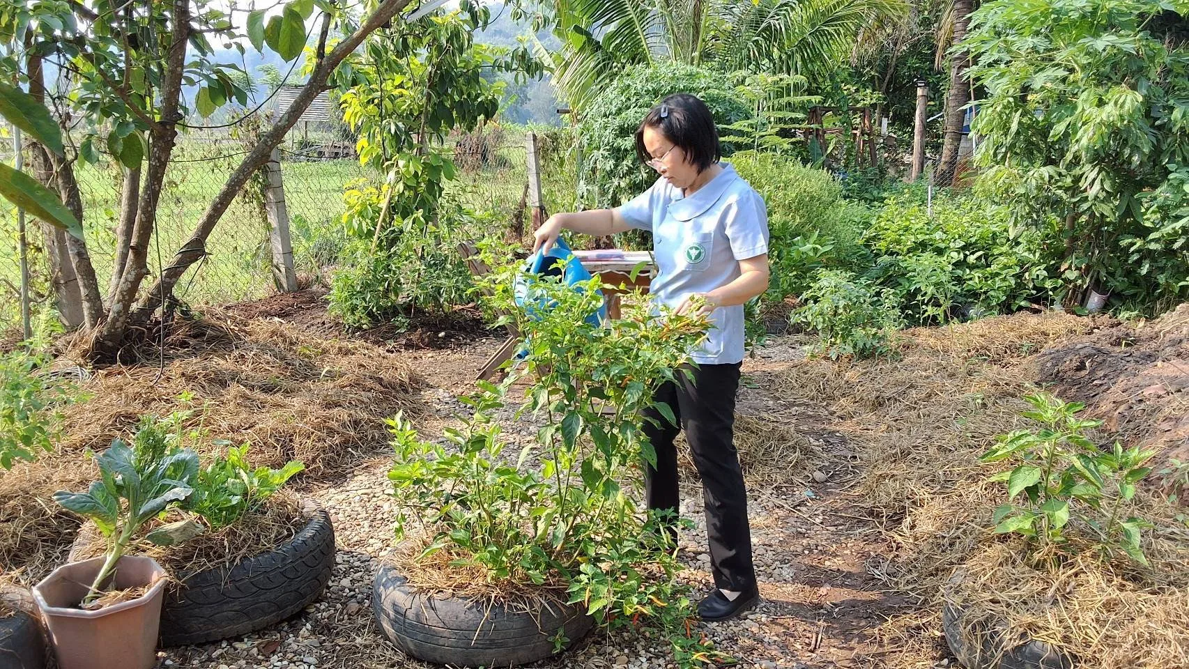 เมื่อวันที่ 27 เมษายน 2568 นายนคร สอนสมฤทธิ์ เจ้าหน้าที่สถานีพัฒนาที่ดินจังหวัดน่าน ร่วมกับผู้ช่วยศาสตราจารย์ ดร.เอกชัย ดวงใจ จากมหาวิทยาลัยเทคโนโลยีราชมงคลล้านนา น่าน หัวหน้าโครงการ “การพัฒนาเครือข่ายชุมชนการจัดการวัสดุเศษเหลือทางการเกษตรเพื่อลดจุดความร้อน (Hot spot) และฝุ่นละออง PM2.5 ในจังหวัดน่าน” ที่ได้รับการสนับสนุนจากสำนักงานการวิจัยแห่งชาติ (วช.) ประจำปีงบประมาณ 2568 ได้ลงพื้นที่ร่วมกับกลุ่มเกษตรกร PGS จำนวน 4 แห่ง ในอำเภอเวียงสา จังหวัดน่าน เพื่อสำรวจและวางแนวทางพัฒนากิจกรรมต้นแบบ “พืชผักสมุนไพร หนึ่งหลุมหนึ่งเมนู สร้างเสริมสุขภาพผู้สูงวัยปลอดภัยจากฝุ่นละออง PM2.5”