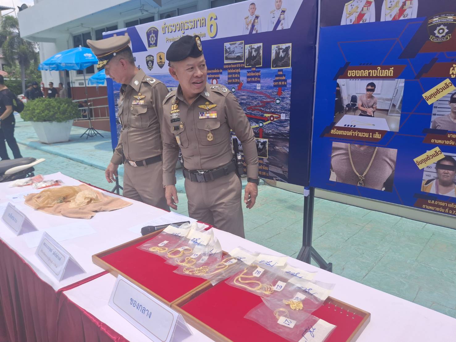 เมื่อเวลา 09.00 น.วันที่ 2 พฤษภาคม 2568 พล.ต.อ.ธนายุตม์ วุฒิจรัสธำรงค์ ที่ปรึกษาพิเศษ.ตร.พล.ต.ท.กิตติศักดิ์ ดุรงควิบูลย์ ผบช.ภ.6 พ.ต.อ.พิระเพชร อุบลจิตต์ รอง ผบก.ภ.จ.ตาก พ.ต.อ.รัง ดาวดึงษ์ ผกก.สภ.แม่สอด แถลงผลจับกุมนายสมชัย อายุ 39 ปี และน.ส.อารยา อายุ47 ปี ผู้ต้องหาชิงทองแห่งหนึ่ง ที่โลตัสแม่สอด อ.แม่สอด จ.ตาก