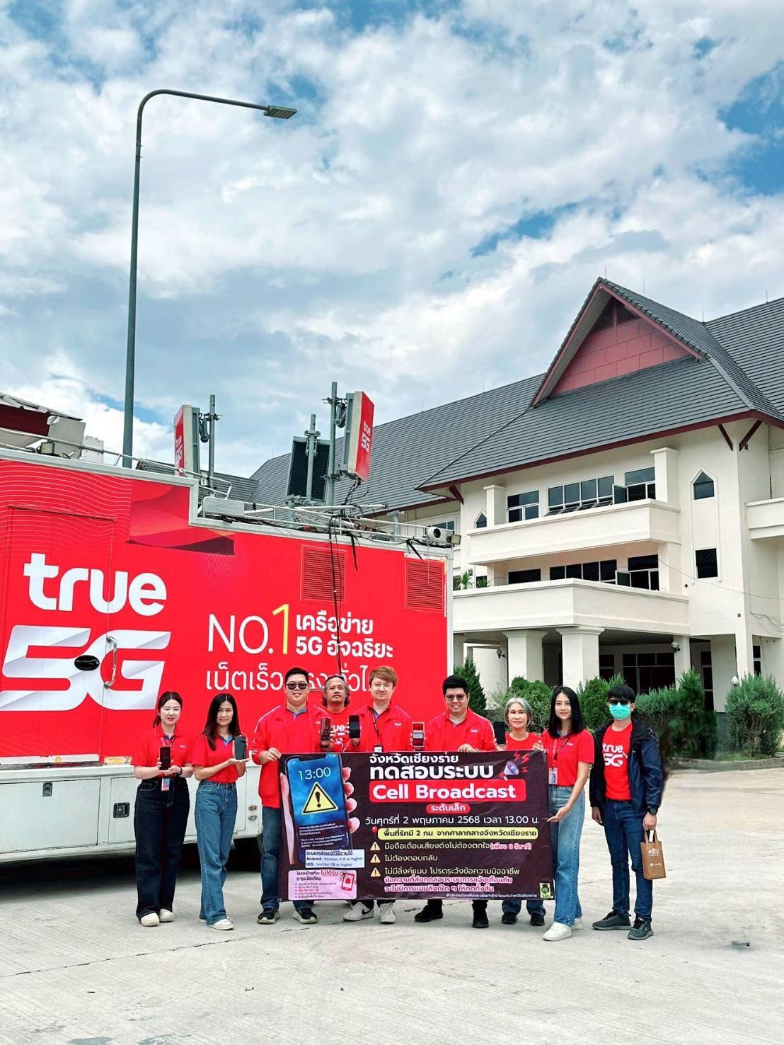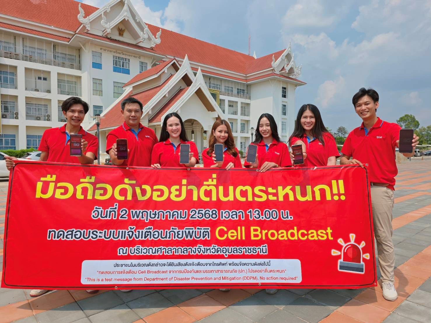 2 พฤษภาคม 2568 – ทรู คอร์ปอเรชั่น ร่วมกับ กรมป้องกันและบรรเทาสาธารณภัย (ปภ.) ประสบความสำเร็จในการทดสอบระบบแจ้งเตือนภัยแบบเซลล์บรอดแคสต์ (Cell Broadcast Service) เต็มรูปแบบระดับเล็กเป็นครั้งแรกของประเทศไทย โดยครอบคลุมพื้นที่ทดสอบ 5 จังหวัดทั่วประเทศ ที่ศาลากลางจังหวัดเชียงราย จังหวัดสุพรรณบุรี จังหวัดอุบลราชธานี จังหวัดสงขลา และ กรุงเทพฯ ที่ อาคารศูนย์ราชการฯ แจ้งวัฒนะ (อาคาร A, B) สร้างมิติใหม่ด้านความปลอดภัยที่พร้อมในการส่งข้อความแจ้งเตือนภัยไปยังโทรศัพท์มือถือของประชาชนคนไทย และนักท่องเที่ยวต่างชาติในพื้นที่ประสบภัยโดยตรงในทันที