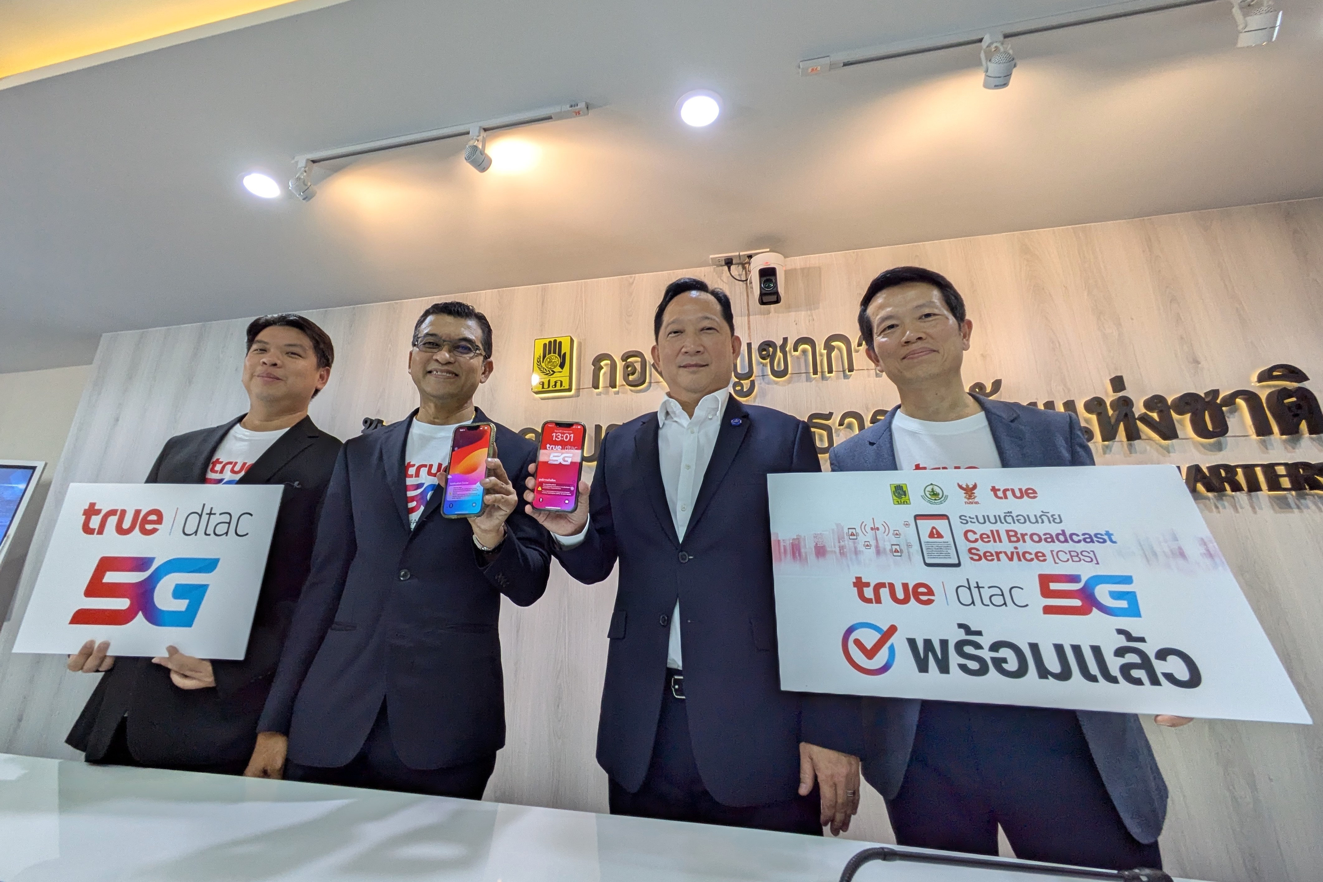 นายจักรกฤษณ์ อุไรรัตน์ หัวหน้าคณะผู้บริหารด้านกิจการองค์กร บริษัท ทรู คอร์ปอเรชั่น จำกัด (มหาชน) กล่าวว่า “ความสำเร็จในการทดสอบระบบแจ้งเตือนภัย Cell Broadcast ระดับเล็กร่วมกับ ปภ. ครั้งนี้เป็นก้าวสำคัญของประเทศไทยในการยกระดับระบบเตือนภัยให้ทัดเทียมนานาชาติ โดยเฉพาะในยุคที่ภัยพิบัติทางธรรมชาติมีความถี่และความรุนแรงเพิ่มขึ้น ซึ่งเราพร้อมให้ความร่วมมือกับทุกภาคส่วนทำงานแบบบูรณาการร่วมกันอย่างใกล้ชิด เราให้ความสำคัญกับการดูแลลูกค้าในทุกสถานการณ์ ทั้งการป้องกัน เตรียมความพร้อมและดูแลในช่วงเกิดภัยพิบัติ โดย ทรู คอร์ปอเรชั่น เป็นรายแรกที่ได้เร่งติดตั้งระบบ CBS ครบทุกสถานีฐาน 4G และ 5G ทั่วประเทศเป็นที่เรียบร้อย ทำให้พร้อมทำงานได้เต็มประสิทธิภาพตามระเบียบปฏิบัติประจำที่ทุกหน่วยงานกำหนดร่วมกัน”