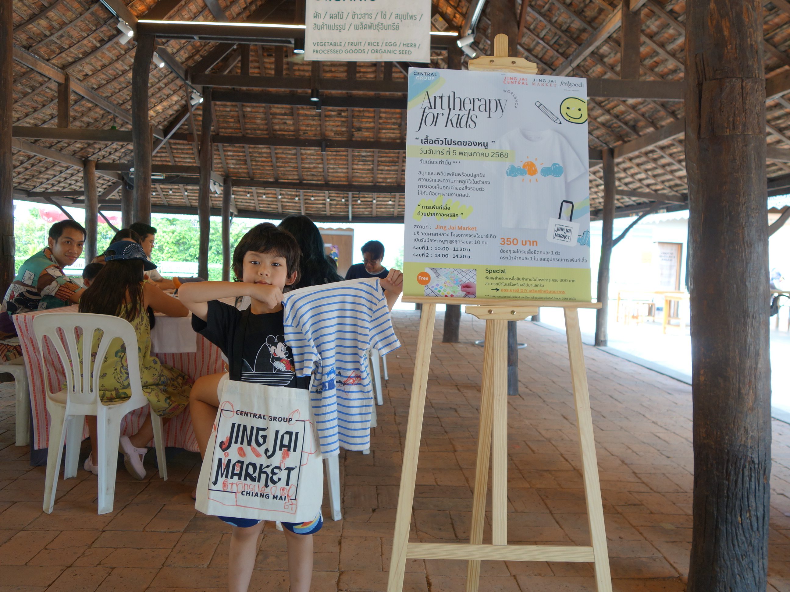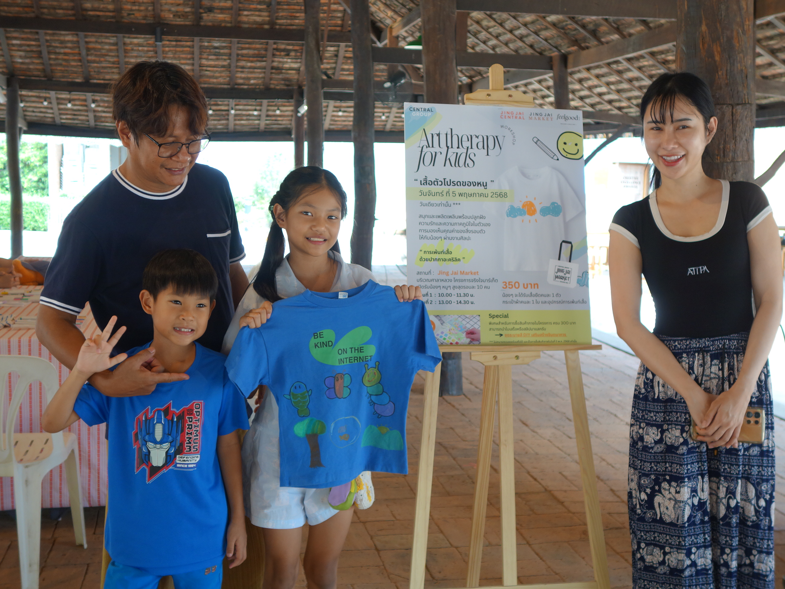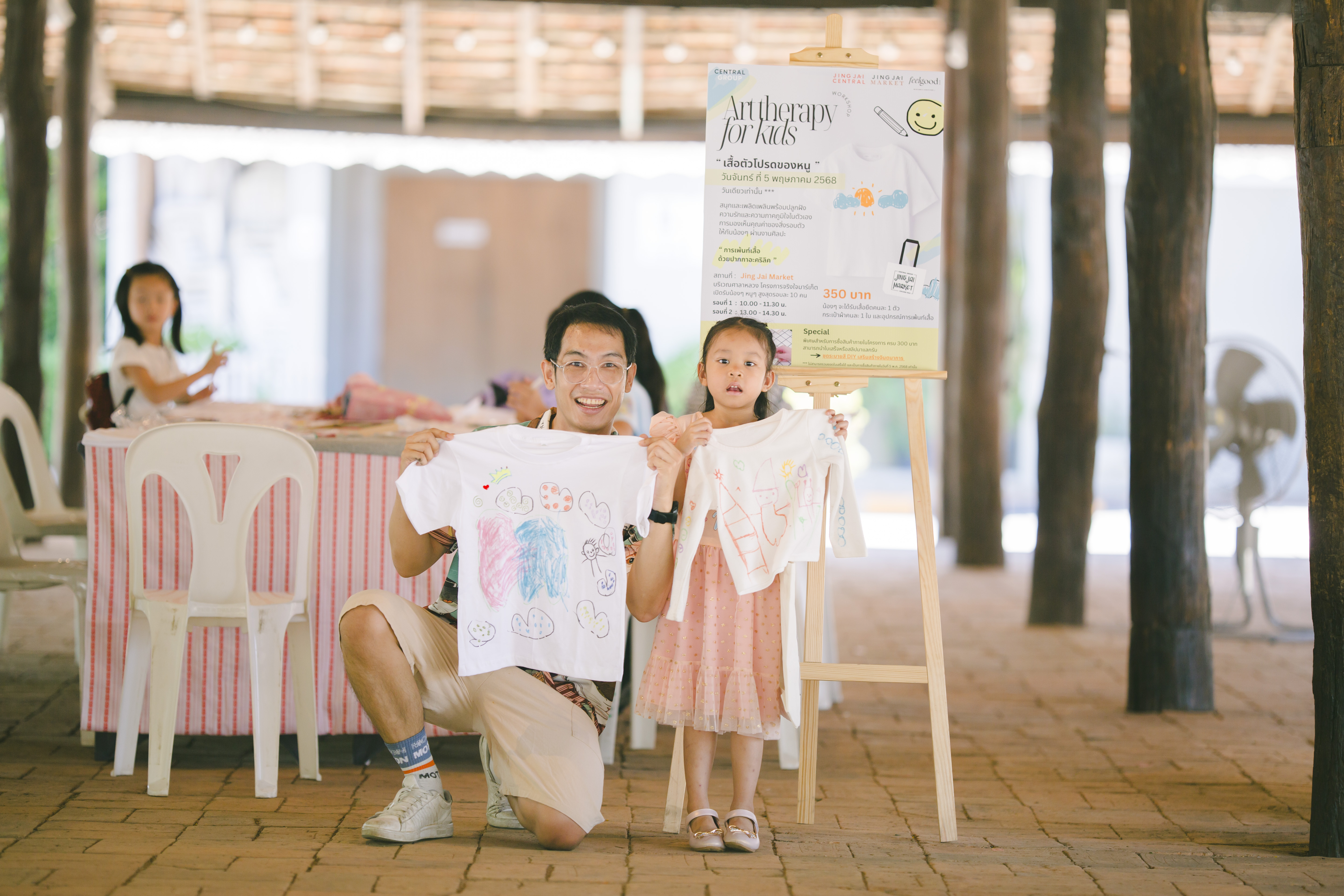 🎨 Jing Jai Kids Workshop “Art Therapy for kids : เพ้นท์เสื้อด้วยปากกาอะคริลิค” โดย Feel Good Club – Activity ✨กิจกรรมเสริมสร้างความภาคภูมิใจในตัวเอง และการมองเห็นคุณค่าของสิ่งรอบตัวผ่านงานศิลปะ ที่บริเวณศาลาหลวง ภายในโครงการจริงใจมาร์เก็ต