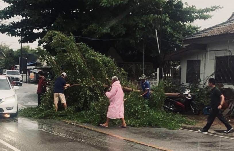 นอกจากนี้มารายงานว่า ในช่วงเงลาเดียวกัน ฝนตกและลมแรงได้ทำต้นไม้ใหญ่ล้มทับมอเตอร์ไซค์ที่อยู่ในพื้นทึ่หนองจ๊อม อ.สันทราย โดยจากการตรวจสอบเบื้องต้นไม่มีผู้ได้รับเจ็บ และมีการเคลียร์พื้นที่เป็นที่เรียบร้อนในเวลาต่อมา