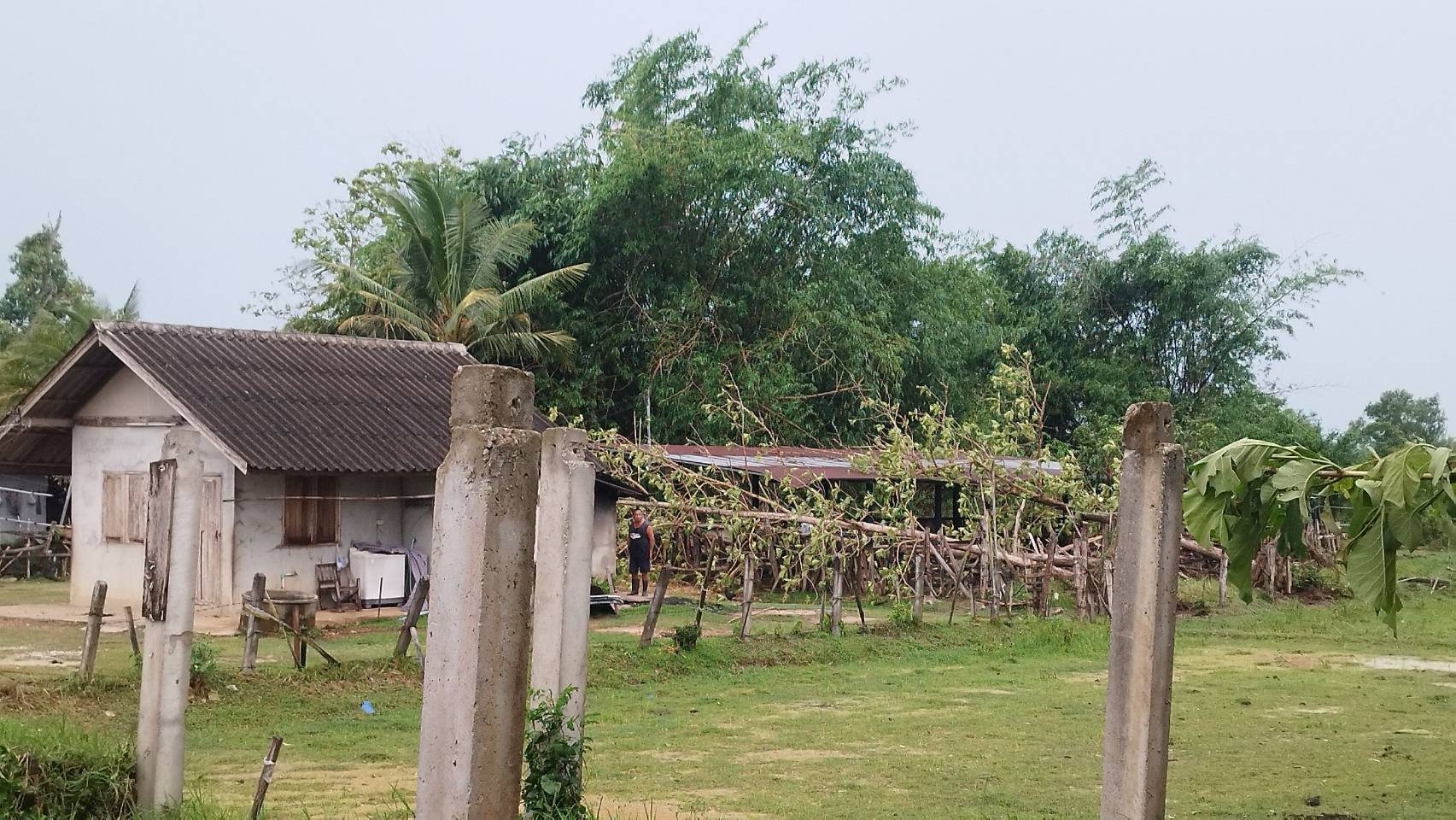พายุหมุนซัดบ้านหม้อ-บ้านโฮ่งทะล้า ต.ปงยางคก อ.ห้างฉัตร หลังคาปลิว ต้นไม้ล้ม เสียหายหลายสิบหลัง