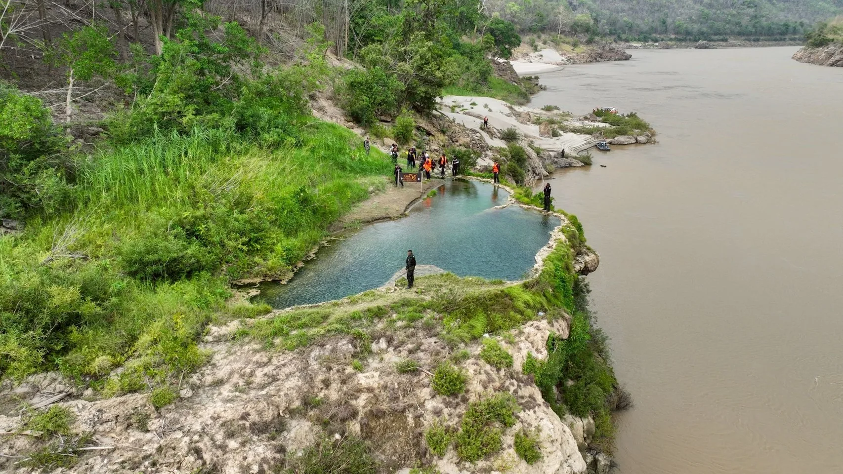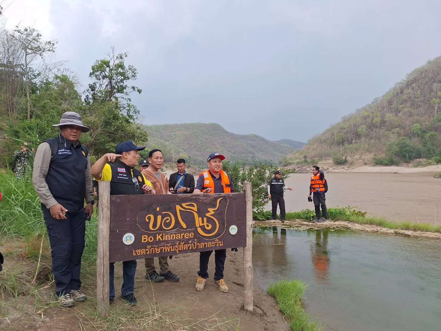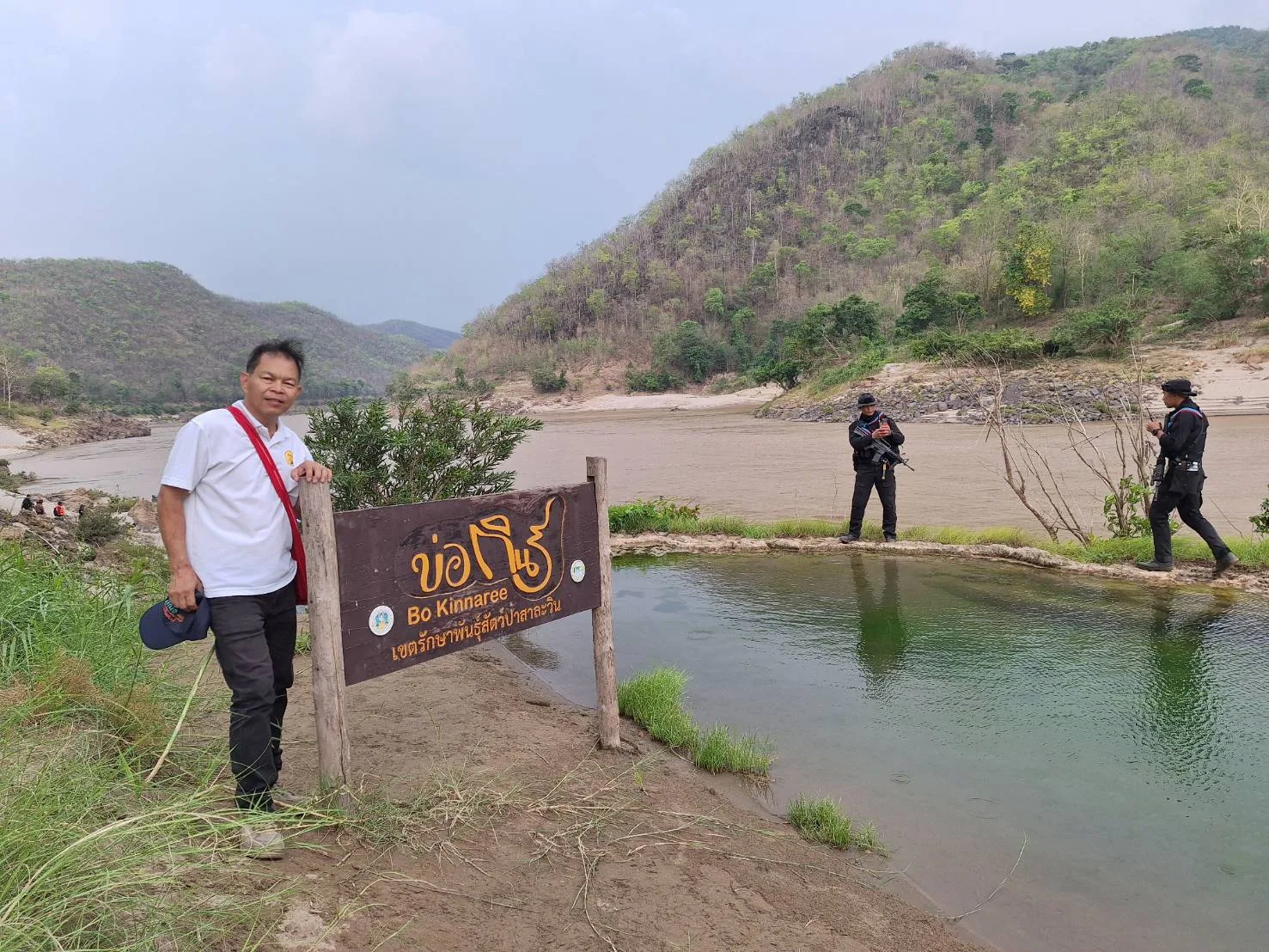 การสำรวจพบบ่อกินรี ดังกล่าวเกิดขึ้นเมื่อวันที่ 10 พ.ค.2568 คณะของนายเอกวิทย์ มีเพียร ผวจ.แม่ฮ่องสอน พร้อมด้วย นายอุดมศักดิ์ ขาวหนูนา รองผู้ว่าราชการจังหวัดแม่ฮ่องสอน, นายบุญลือ ธรรมธรานุรักษ์ รองผู้ว่าราชการจังหวัด จังหวัดแม่ฮ่องสอน , พ.อ.ภูมิรัชต์ ดุษฎี รองผู้อำนวยการรักษาความมั่นคงภายในจังหวัดแม่ฮ่องสอน (ฝ่ายทหาร) และ พ.อ.ยอดชาย พวงวรินทร์ ผบ.ฉก.สิงหนาท , พ.อ.ต่อพงศ์ ชำนาญอาสา ผู้บังคับการหน่วยเฉพาะกิจกรมทหารพรานที่ 36 แม่สะเรียง, นายวรศักดิ์ พานทองนายอำเภอแม่สะเรียง, นางหฤทัย หอมชื่น หัวหน้าสำนักงานจังหวัดแม่ฮ่องสอน, นายสงกรานต์ สันติกุล นายกองค์การบริหารส่วนตำบลแม่คง, นายธนากร ถิรชานิธิศ หัวหน้าเขตรักษาพันธุ์สัตว์ป่าสาละวิน, นายจักรกฤษณ์ สิงหการ ผู้ช่วยหัวหน้าอุทยานแห่งชาติสารระวิน, ว่าที่ร้อยตรีภาณุวัฒน์ ขัดนาค ผู้อำนวยการสำนักงานการท่องเที่ยวแห่งประเทศไทย (ททท.) สำนักงานแม่ฮ่องสอน, นางชุติวรรณ ตักกะภูมิ รองผู้อำนวยการสำนักงานการท่องเที่ยวแห่งประเทศไทย (ททท.) สำนักงานแม่ฮ่องสอน และนายภานุเดช ไชยสกูล ประธานสภาอุตสาหกรรมการท่องเที่ยวจังหวัดแม่ฮ่องสอน และนายกสมาคมธุรกิจท่องเที่ยวแม่ฮ่องสอน ได้ร่วมลงพื้นที่ตามแนวชายแดนไทย-เมียนมา ตามแนวชายแดนแม่น้ำสาละวิน อำเภอแม่สะเรียง จังหวัดแม่ฮ่องสอน เพื่อติดตามสถานการณ์ชายแดน ไฟป่า การค้า และการท่องเที่ยว ในพื้นที่หมู่บ้านชายแดนติดแม่น้ำสาละวิน