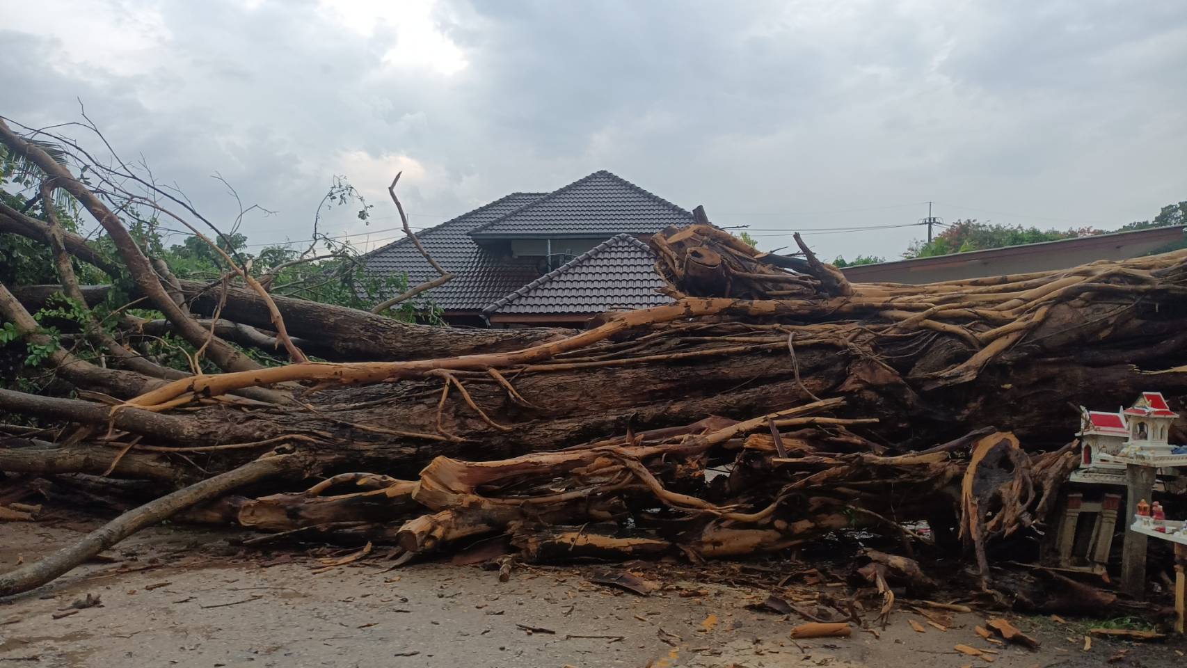 ลำปางอ่วมหลายแห่ง หลังพายุพัดถล่มในหลายพื้นที่ สร้างความเสียหายเป็นบริเวณกว้าง พบต้นขะจาวลำต้นหลายคนโอบอายุกว่า 150 ปี ล้มทับเสาไฟฟ้าหักไปสองต้น หวิดล้มบ้านบ้านเรือนชาวบ้าน