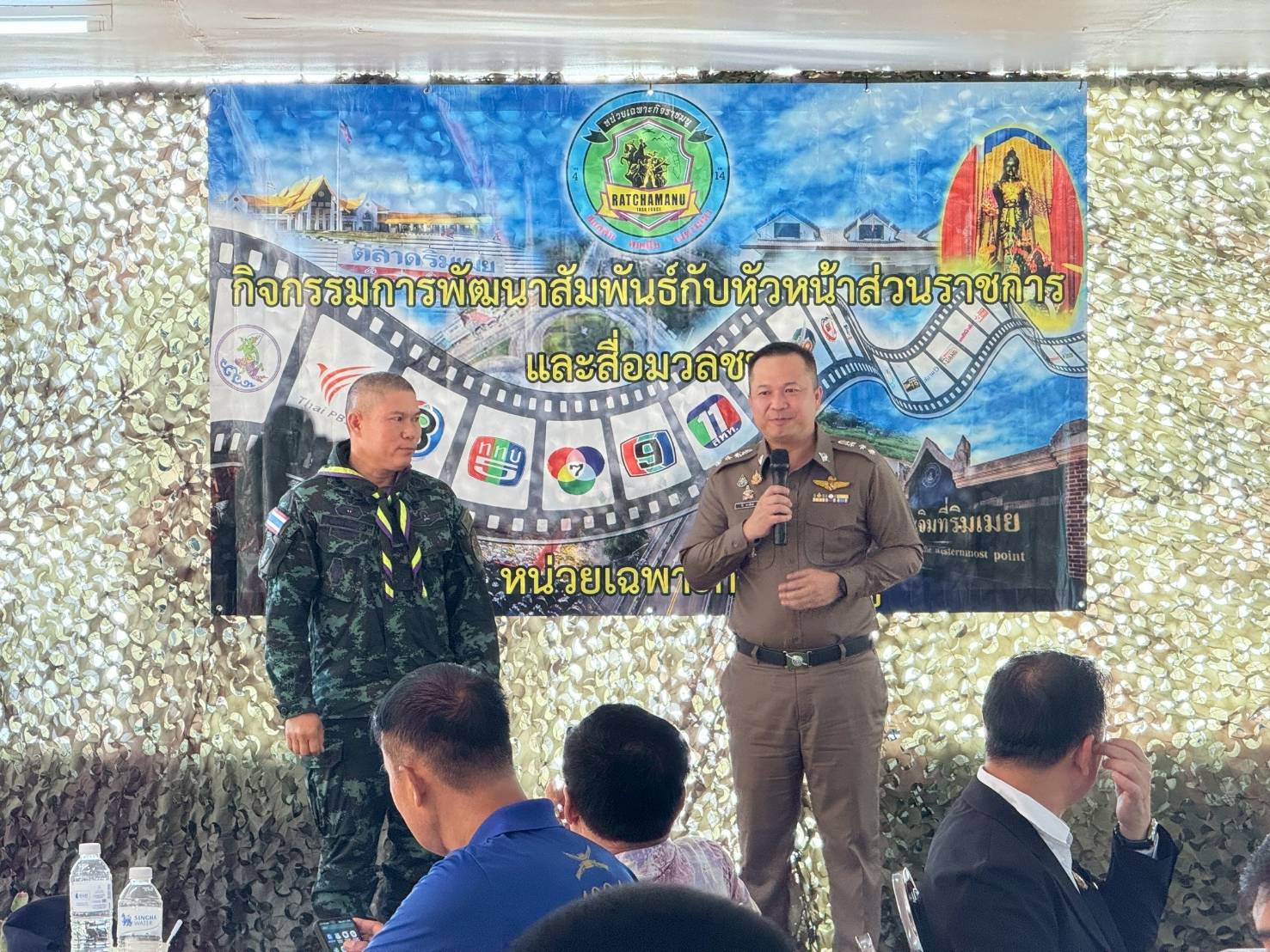 เมื่อเวลา 07.00 น.วันที่14 พฤษภาคม 2568 ที่หน่วยเฉพาะกิจราชนู บ้านห้วยหินฝน หมู่ที่ 6 ต.แม่ปะ อ.แม่สอด จ.ตาก พันเอก ณัฐกร เรือนติ๊บ ผู้บังคับหน่วยเฉพาะกิจราชมนู จัดกิจกรรมพบพัฒนาสัมพันธ์ กับหัวหน้าส่วนราชการและสื่อมวลชน ในพื้นที่อำเภอแม่สอด โดยมี หัวหน้าส่วนราชการ และสื่อมวลชนในพื้นที่ เข้าร่วมกิจกรรมดังกล่าวประมาณ 120 คน เพื่อพัฒนาความสัมพันธ์ระหว่างหน่วยทหาร หน่วยงานราชการ และสื่อมวลชน