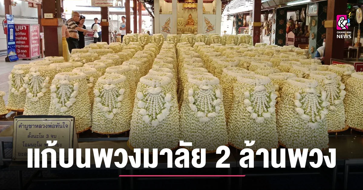 ฮือฮา นักธุรกิจนำพวงมาลัยดอกมะลิ 2 ล้านพวง นำมาแก้บนองค์หลวงพ่อทันใจ วัดพระธาตุดอยคำ