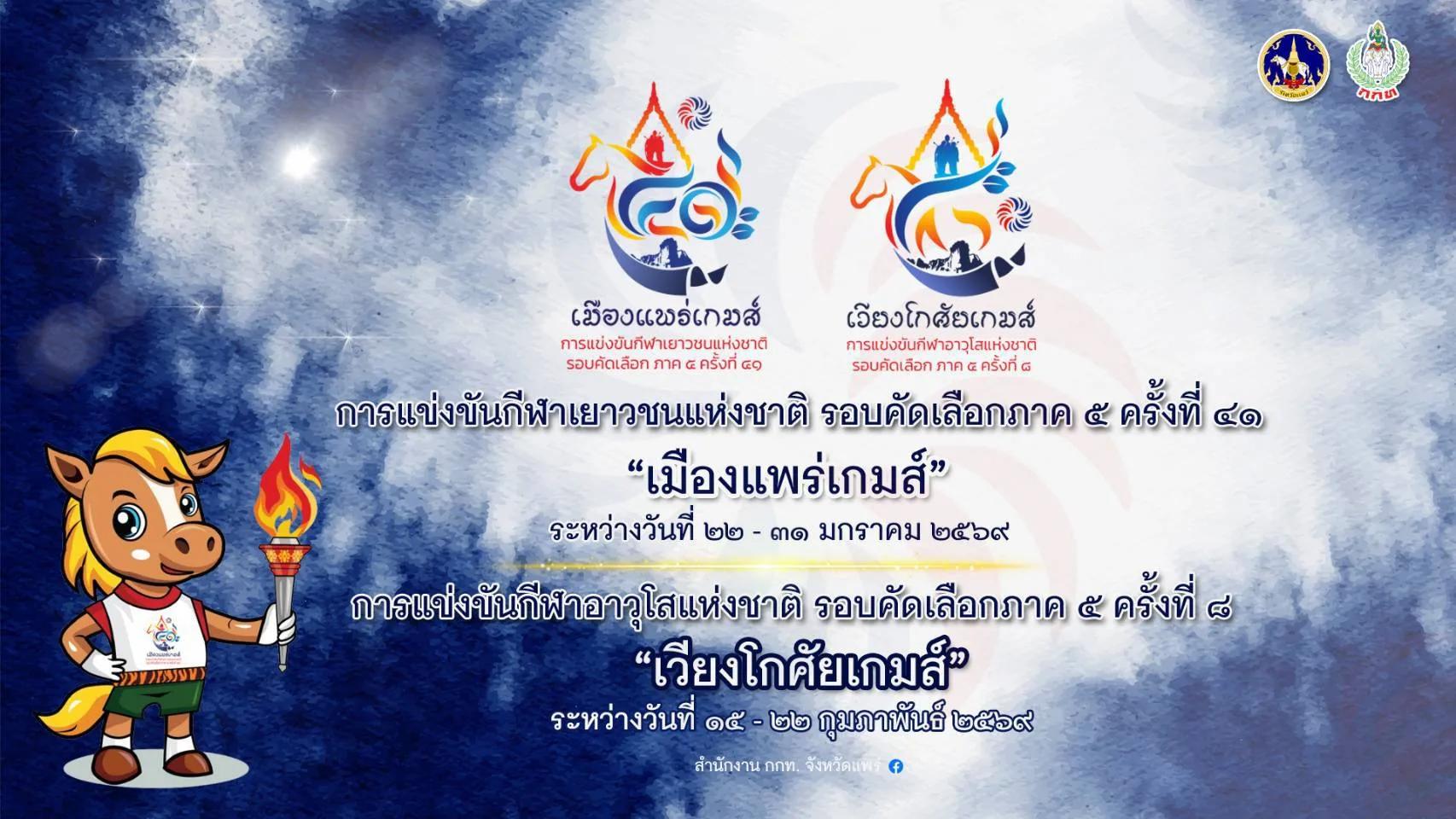 สำหรับกีฬาเยาวชนแห่งชาติ รอบคัดเลือกภาค 5 ครั้งที่ 41 ที่จังหวัดแพร่ จะเป็นเจ้าภาพในช่วงต้นปีหน้า จะเป็นการคัดเลืิอกนักกีฬาตัวแทนภาค 5 เข้าร่วมการแข่งขันระดับชาติ ที่จังหวัดสุราษฎร์ธานี ในช่วงระหว่างวันที่ 7 – 17 พฤษภาคม 2569