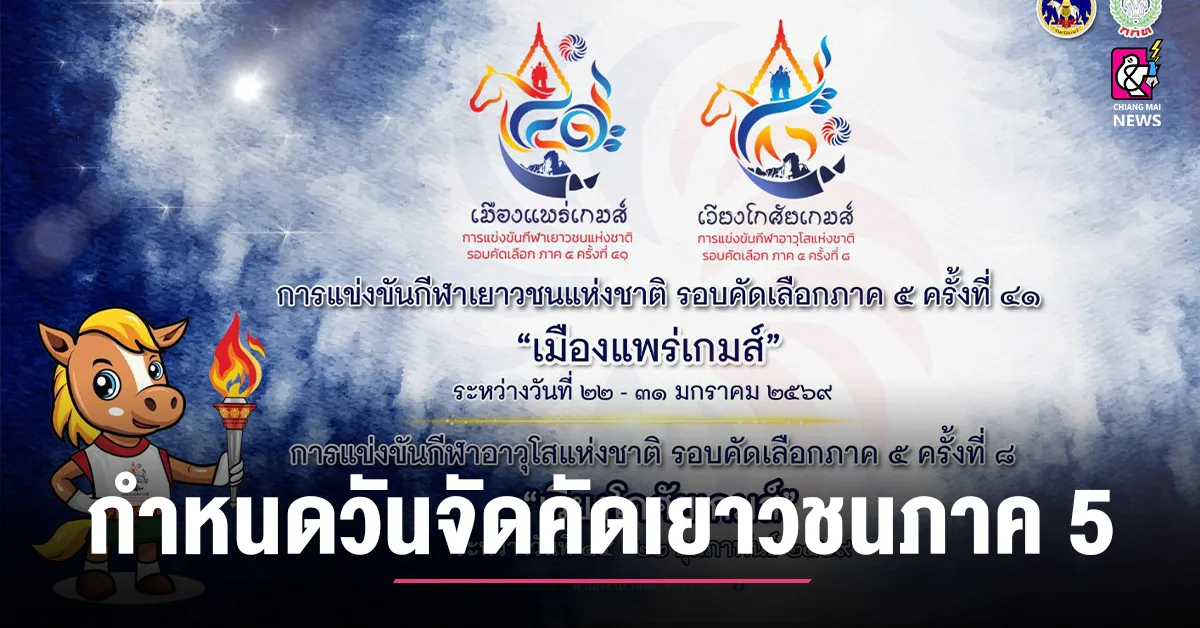 โดยกีฬาเยาวชนแห่งชาติ รอบคัดเลือกภาค 5 ครั้งที่ 41 กำหนดจัดการแข่งขันระหว่างวันที่ 22 – 31 มกราคม 2569 โดยใช้ชื่อว่า “เมืองแพร่เกมส์”