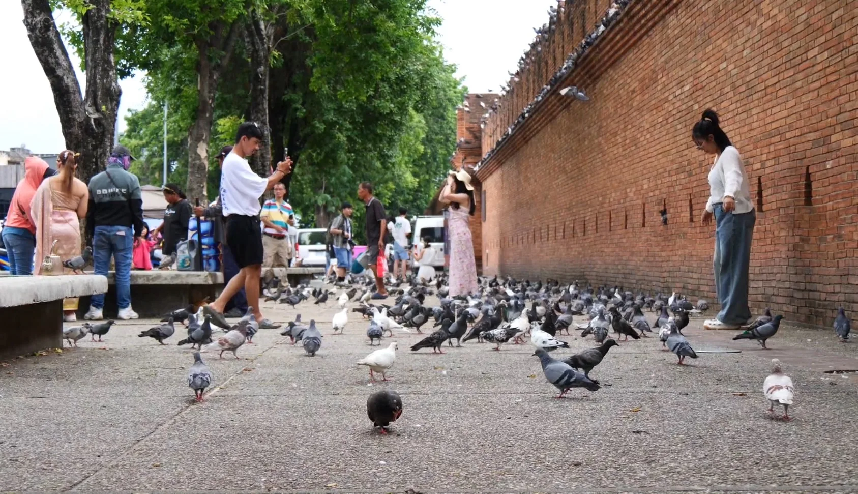 ทีมข่าวลงพื้นที่สำรวจลานเอนกประสงค์ข่วงประตูท่าแพ พบว่ายังคงมีกลุ่มคนลักลอบขายและโปรยอาหารล่อนกให้นักท่องเที่ยวถ่ายภาพ คนกลุ่มนี้จะช่วยกันสอดส่องและหูตาไว เดินหลบเลี่ยงออกไปจากพื้นที่ทันทีที่เจ้าหน้าที่เทศกิจหรือตำรวจท่องเที่ยวเข้ามาตรวจสอบ ก่อนจะกลับมาให้บริการนักท่องเที่ยวอีกครั้งเมื่อทางสะดวก แม้ที่ผ่านมาเจ้าหน้าที่จะเข้มงวดและจับกุมคุมตัวไปเปรียบเทียบปรับอยู่เป็นประจำ แต่ก็ยังพบเห็นพฤติกรรมแบบนี้ได้ทุกวัน เรียกว่าเป็นปัญหาซ้ำซากที่แก้ไม่หาย